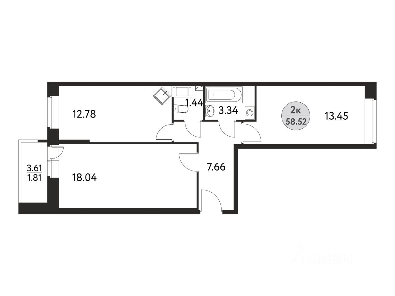 58 м² · Этаж 13 из 17