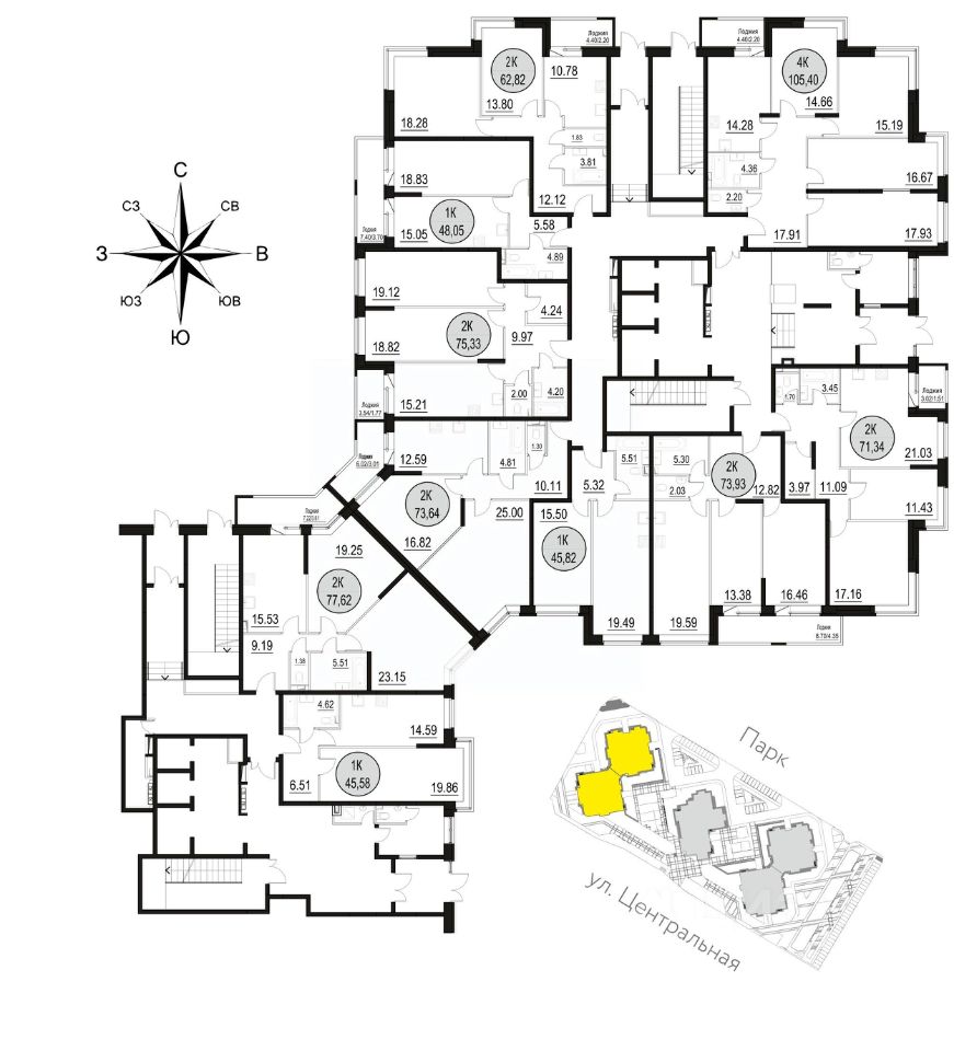 Комплекс располагается в центре г. Щёлково на ул. Центральная. Социальная инфраструктура: в пешей доступности находятся детские сады и школы. Коммерческая инфраструктура: рядом с жилым комплексом расположены продуктовые супермаркеты, салоны красоты и кафе. Спортивная инфраструктура: в 3 минутах ходьбы от жилого комплекса расположен физкультурно-оздоровительный комплекс, футбольное поле, волейбольный корт, хоккейная коробка с теплой раздевалкой, рампы для скейтбординга. В одной минуте ходьбы от ЖК расположен городской парк с благоустроенным пляжем. ЖК представляет из себя монолитно-кирпичный дом с закрытой придомовой территорией, видеонаблюдением и охраной. Особенности ЖК: - Шумозащитные стеклопакеты - 3 лифта на этаже - Закрытая охраняемая территория - Двор без машин - Современные игровые площадки для детей - Собственная торговая галерея