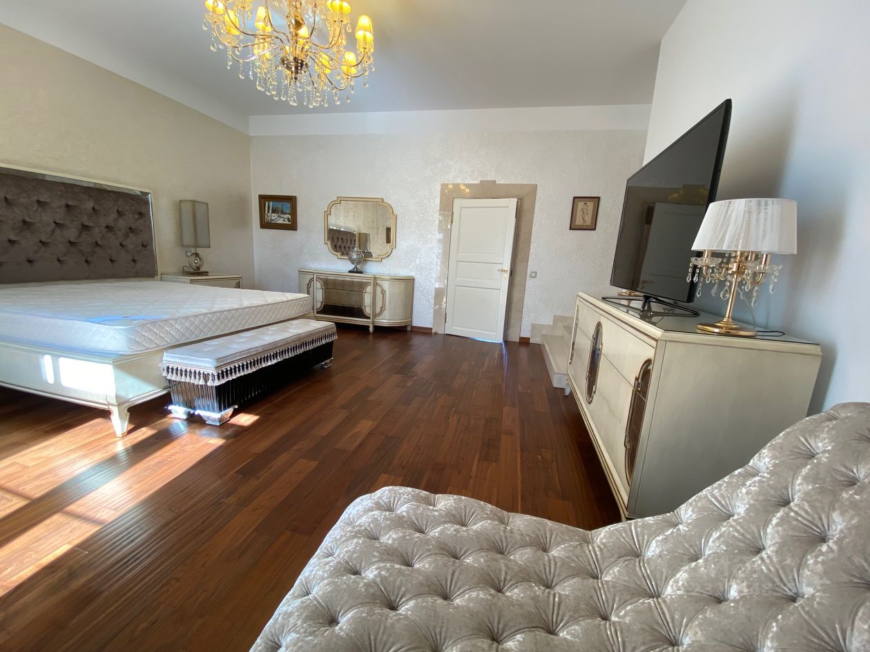 Охраняемый коттеджный посёлок Горки-8. Удобное транспортное сообщение, элитное направление, развитая инфраструктура. Предлагается в аренду современный, просторный дом с дизайнерским ремонтом. Выполнен в классическом стиле, дорогие отделочные материалы, мебель и бытовая техника от лучших производителей. Отдельностоящий комплекс СПА с плавательным бассейном! Планировка: цоколь: холл, кухня, котельная, бильярдная с камином, тренажерный зал, кладовая, с/у 1 этаж: прихожая, холл, кухня, столовая, каминный зал, гостиная, спальня, 2 с/у, 2 гардеробные 2 этаж: холл, 3 спальни, 3 с/у, гардеробная, хозяйская спальня с ванной комнатой и гардеробной, 2 балкона. Ухоженный участок с ландшафтным дизайном, хвойными деревьями и кустарниками, газоном , зоной барбекю. На участке отдельностоящий гараж на 3 а/м с квартирой для персонала. Оперативный показ в удобное для клиента время!