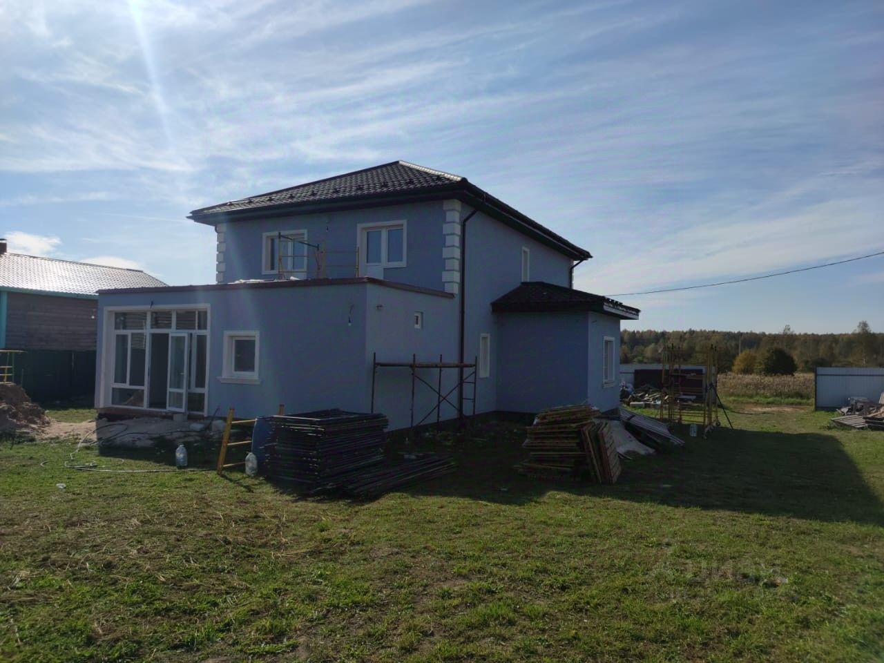 Коммуникации: - электричество 15 кВт (централизованное), - вода (собственная скважина), находится в доме. -септик на 8 человек. -ведутся работы по прокладке магистрального газопровода. Фундамент - монолитный (лента + плита) Дом из газобетона, фасад утеплен базальтовой плитой, отштукатурен. Перекрытия второго этажа- плиты железобетонные пустотелые. Стены отштукатурены и отшпаклеваны. По первому этажу уложен теплый пол. Отопление и водопровод разведены. Крыша вальмовая из металочерепицы.
