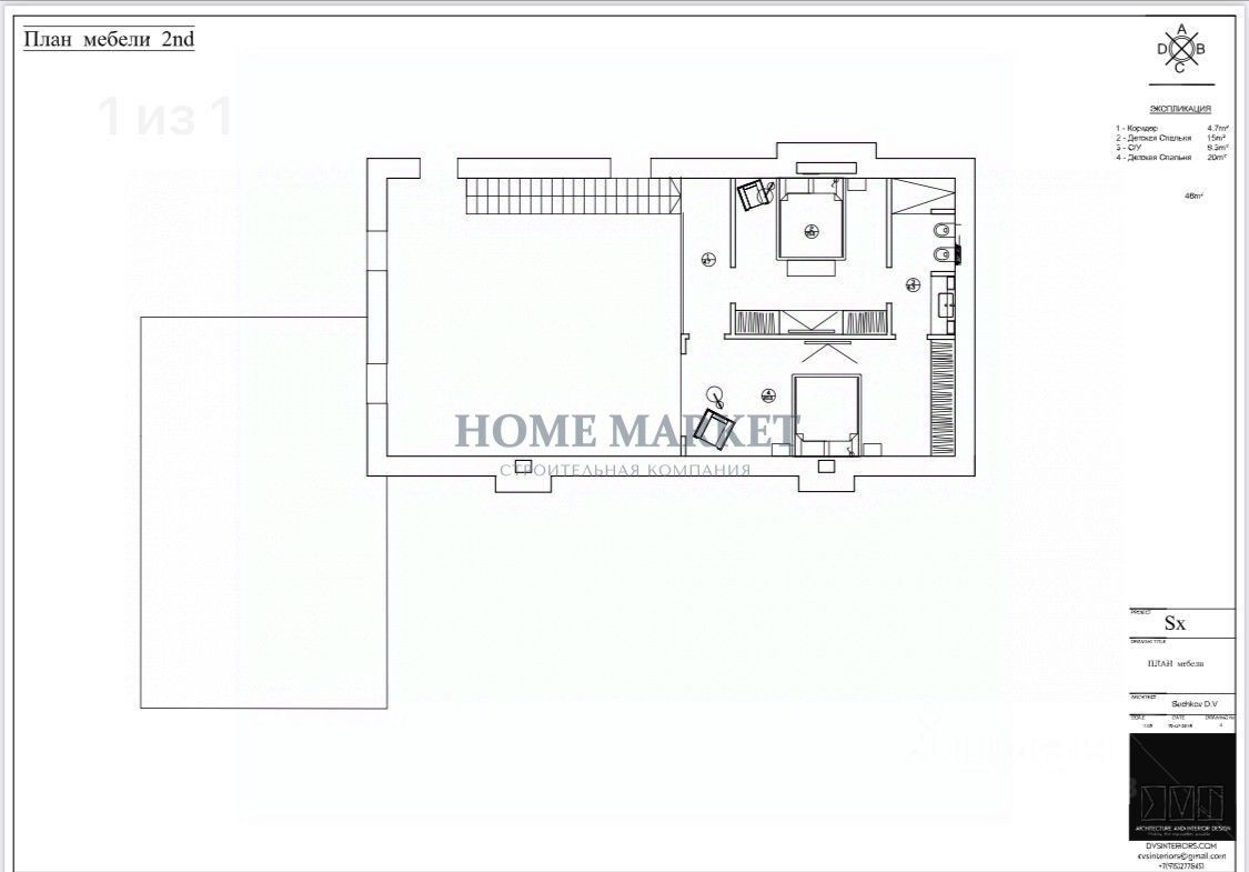 2 этаж: две большие спальни (15 кв.м. и 20 кв.м.), санузел с душевой.