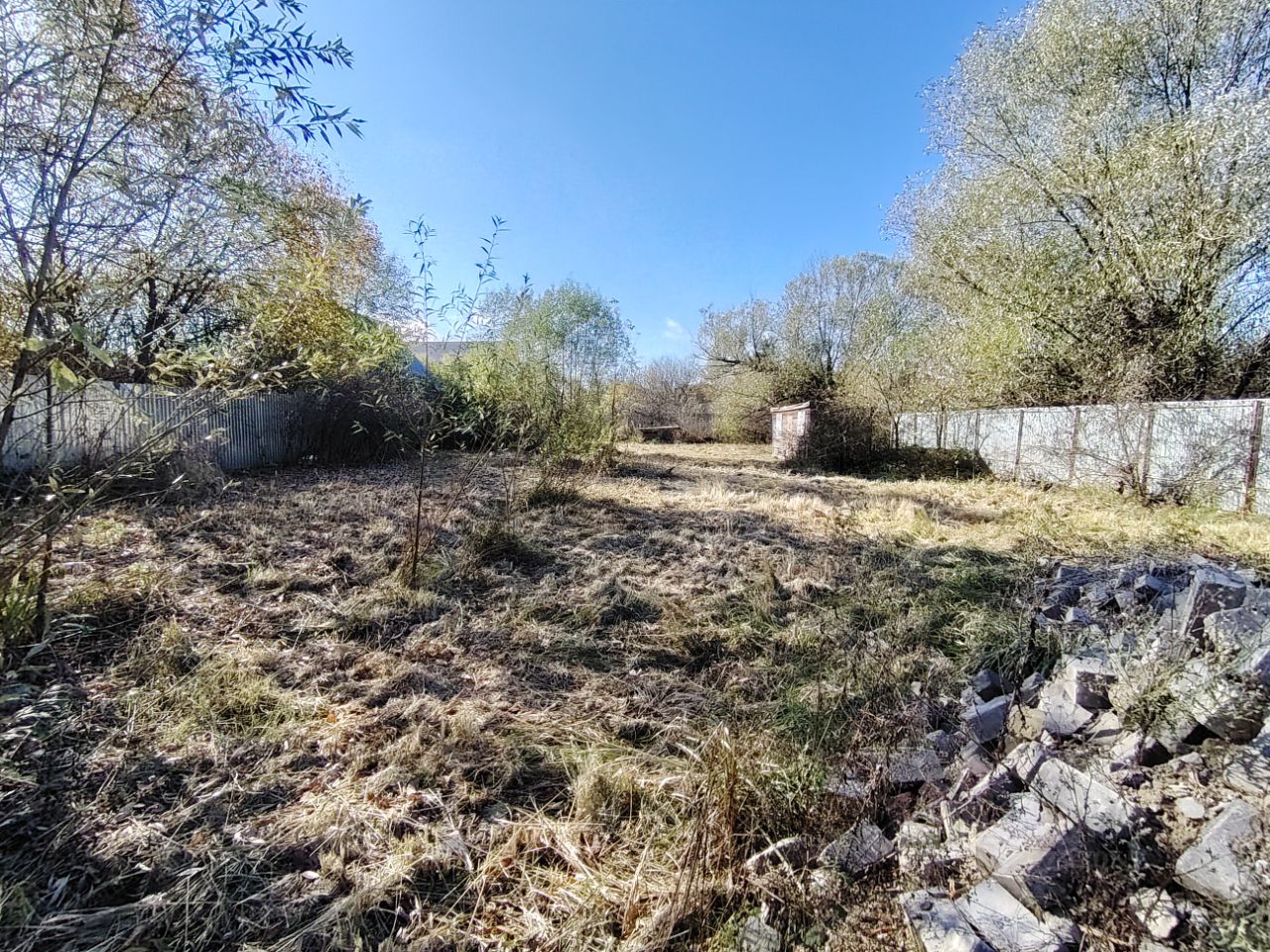 Земельный участок 1553 кв.м. в деревне, земли поселений, ИЖС. Магистральный газ по границе участка, электричество оплачено, подведено, есть возможность подключения к водопроводу. Участок без строений, огорожен со всех сторон, есть бытовка и ленточный фундамент под гостевой дом 6 на 6 метров. Соседние участки застроены.