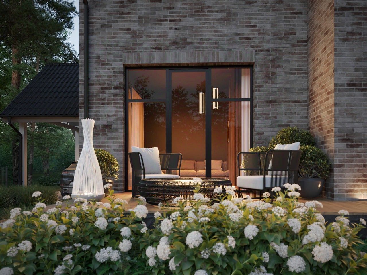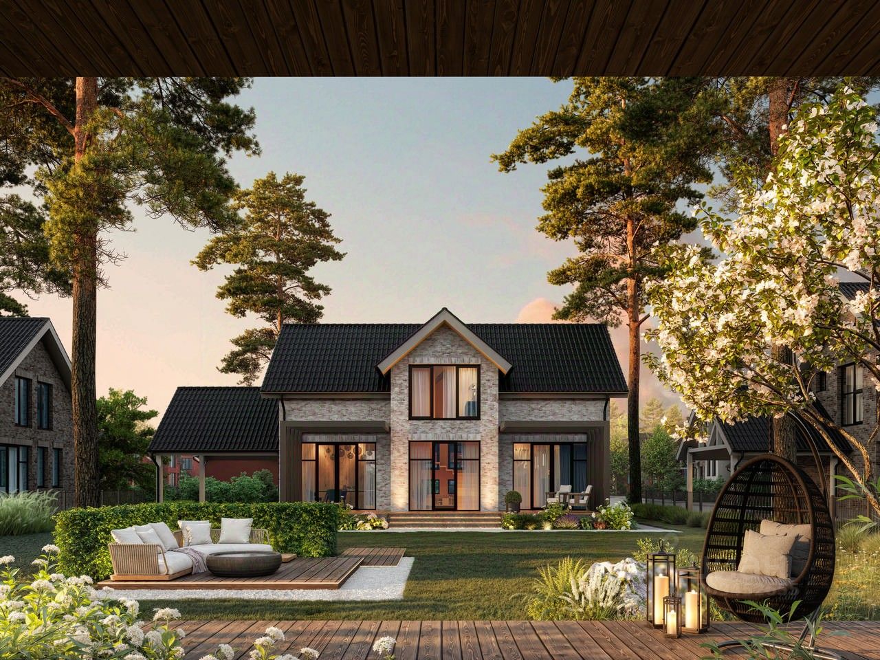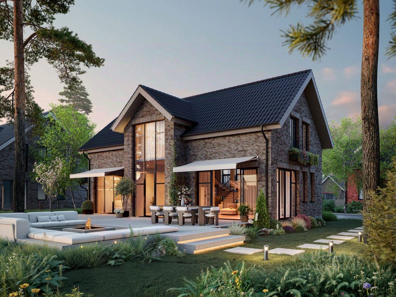 Уютный дом 592 площадью 150 кв. м. на участке 6 соток. Просторная планировка, современные материалы и панорамные окна.