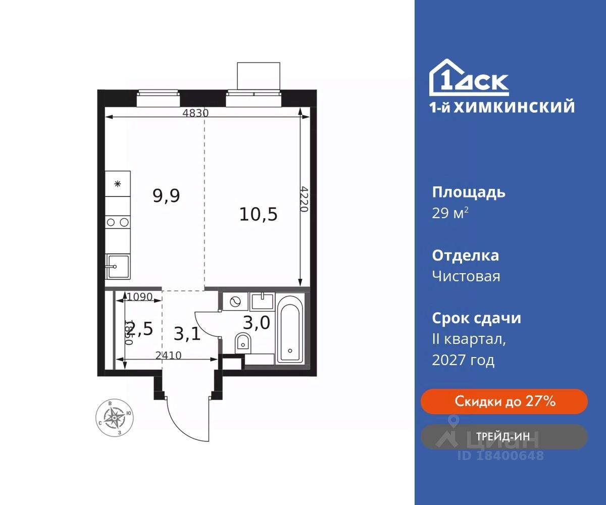 Только до конца апреля семейная ипотека без наценки со скидками до 32% Максимальная скидка при 100% оплате. Скидки до 32% предоставляются также при рассрочке. Лучший жилой комплекс Московской области! Победитель премии Urban 2024, номинация ''Лучший строящийся жилой комплекс комфорт-класса Московской области''. Прямая продажа от застройщика! Жилой Комплекс класса Комфорт. Продаётся студия номер 302 общей площадью 29 кв.м на 13-м этаже 14 этажного дома. Чистовая отделка.
