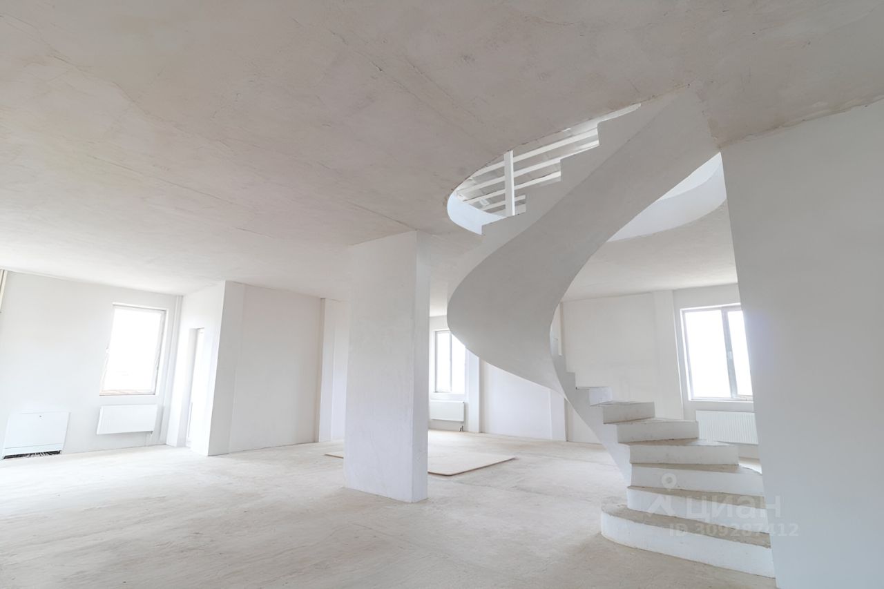 К продаже предлагается стильный дуплекс (строительство завершено в 2022 г.) площадью 490 кв.м., расположенный на земельном участке 10 соток. Регистрация (прописка) разрешена. Фундамент дома из бетонной плиты, каркасно-монолитная ж/б конструкция дома, материал стен газоблоки, поверх штукатурка (по сетке). Лестница между этажами бетонная. В дом заведено электричество. Вода, подвергшаяся специальной обработке, поступает в дом централизовано. Поселок газифицирован (газ заведен в дом, поверка счетчиков проводилась в 2022 г.), отопление разведено по всему дому. Канализация осуществляется при помощи септика - Топаз 10. Высота потолков - 3 метра.