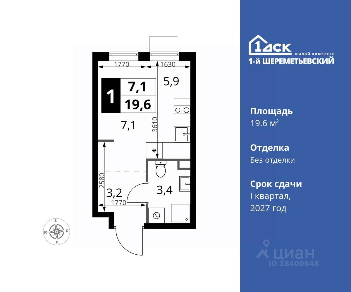 Максимальные скидки при 100% оплате. Прямая продажа от застройщика! Жилой Комплекс класса Комфорт плюс. Продаётся студия номер 231 общей площадью 19.6 кв.м на 2-м этаже 17 этажного дома. Без отделки.