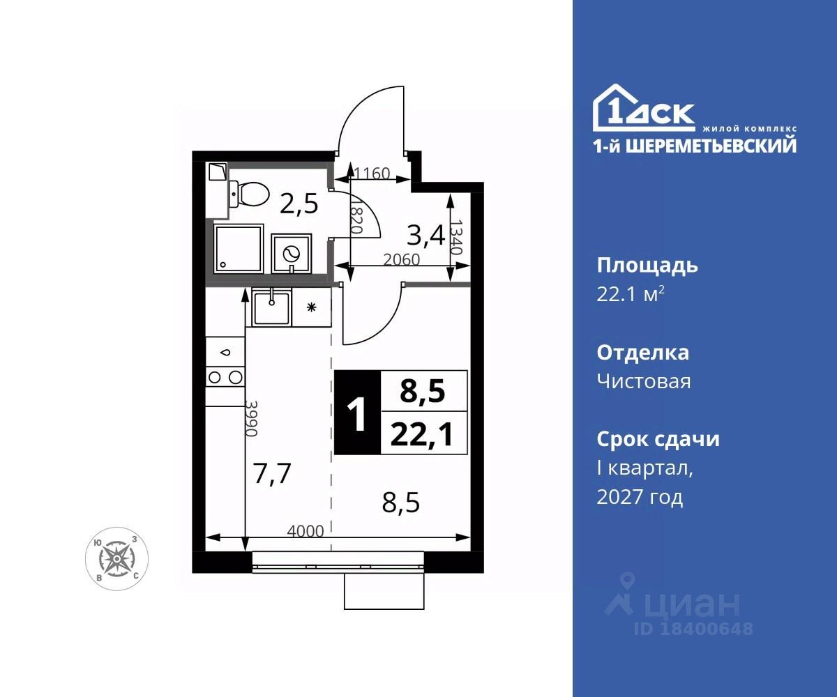 Максимальные скидки при 100% оплате. Прямая продажа от застройщика! Жилой Комплекс класса Комфорт плюс. Продаётся студия номер 1019 общей площадью 22.1 кв.м на 15-м этаже 16 этажного дома. Чистовая отделка.