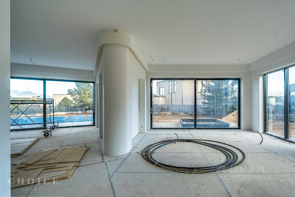 Лот 40043. Эксклюзив! Лучшее предложение в поселке! Предлагаем на продажу дом площадью 900 кв.м с панорамным остеклением и большой степенью готовности в элитном посёлке ''Резиденции Берёзки''. Коммуникации заведены в дом. Готова под ключ система приточной вентиляции. Отличное расположение в поселке. Продуманная планировка и современный дизайн. Проделана очень большая работа по отделке под ключ. Окна schuсо. Дополнительно на участке построена спа- зона с русской баней и уличным подогреваемым бассейном. До Москва-Сити 20-25 мин по проспекту Багратиона. 1 этаж: бильярдная, холл, гардеробная, санузел, спальня, гостиная, кухня, рабочая кухня, гараж 2 этаж: холл, мастер - спальня с санузлом и гардеробной - 3шт.