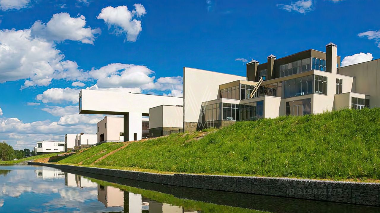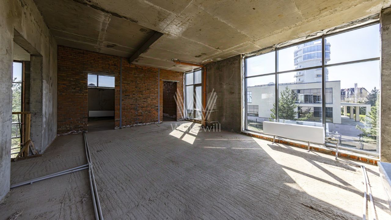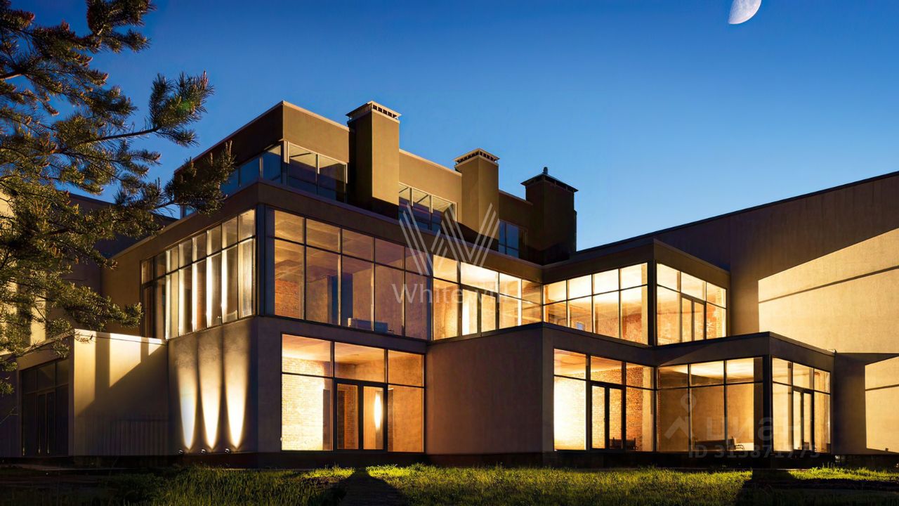 ID 13 437. Березки. Эксклюзив компании Whitewill. Загородная резиденция площадью 1100 м² расположена на участке 23,7 соток на живописной береговой линии. Авторский проект швейцарского дизайнера Даниэля Шиндлера Cubes реализован в форме пирамиды из кубов, где каждый элемент тщательно продуман. Фасад с панорамным остеклением создает эффект единения с природой, открывая великолепные виды на реку и наполняя пространство естественным светом. Второй свет добавляет интерьерам воздушности и простора. Отсутствие отделки позволяет будущим владельцам выбрать финишные покрытия, мебель и технику на свой вкус.