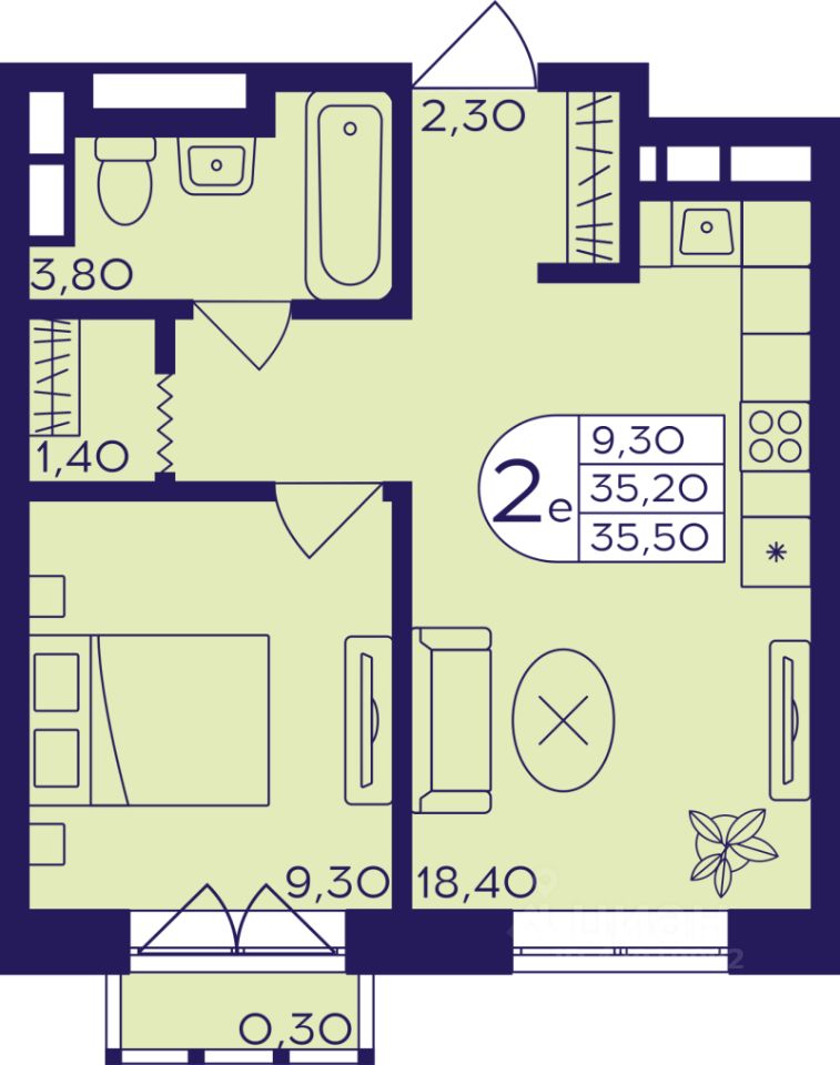 Общая площадь35,5 м2
