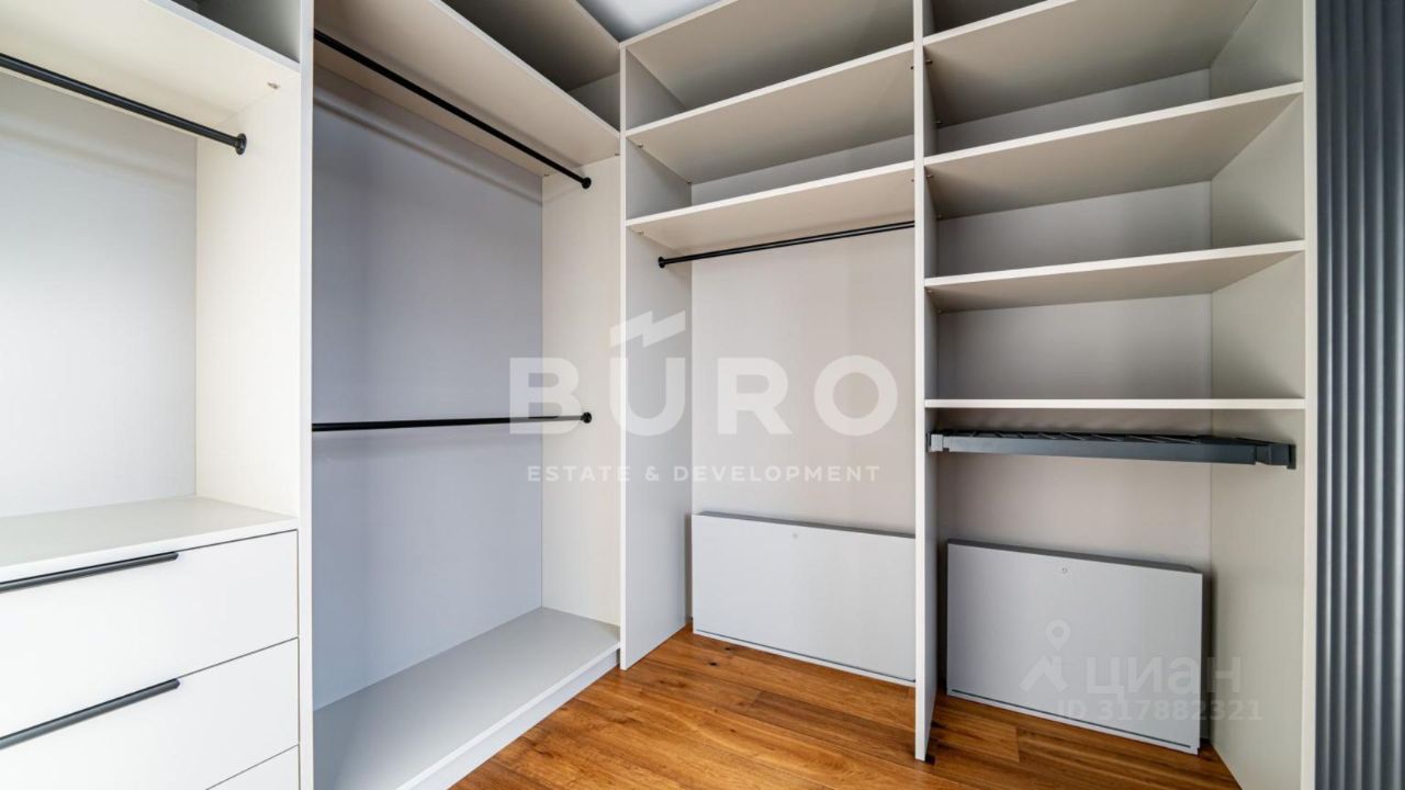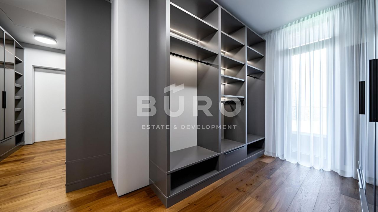 Второй этаж: холл, мастер-спальня, 2 спальни с выходами на балкон, со своими гардеробными и ванными комнатами, спальня с гардеробной и ванной комнатами. Общая площадь балконов - 67,9 м².