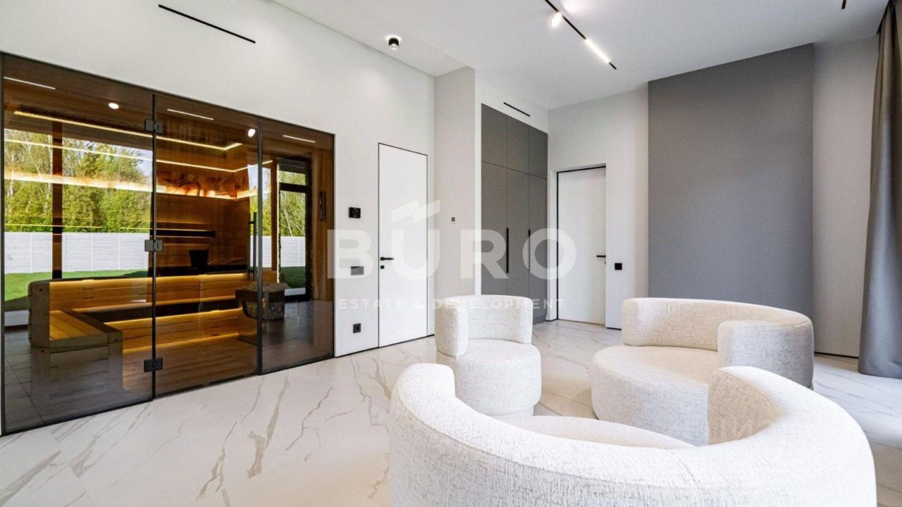 Загородный дом с 5-ю спальнями, общей площадью 605 м², представлен ''под ключ'' и расположен на видовом участке 16 соток.