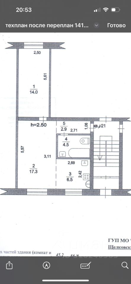 Общая площадь 45,2 кв.м. оптимальное пространство для семьи. Продуманная планировка: изолированные комнаты 14 кв.м. и 17,3 кв.м. позволят каждому члену семьи иметь личное пространство. Уютная кухня 6,5 кв.м. идеально для совместных ужинов и кулинарных экспериментов. Отличное жилое состояние: квартира ухожена, выполнен качественный ремонт.