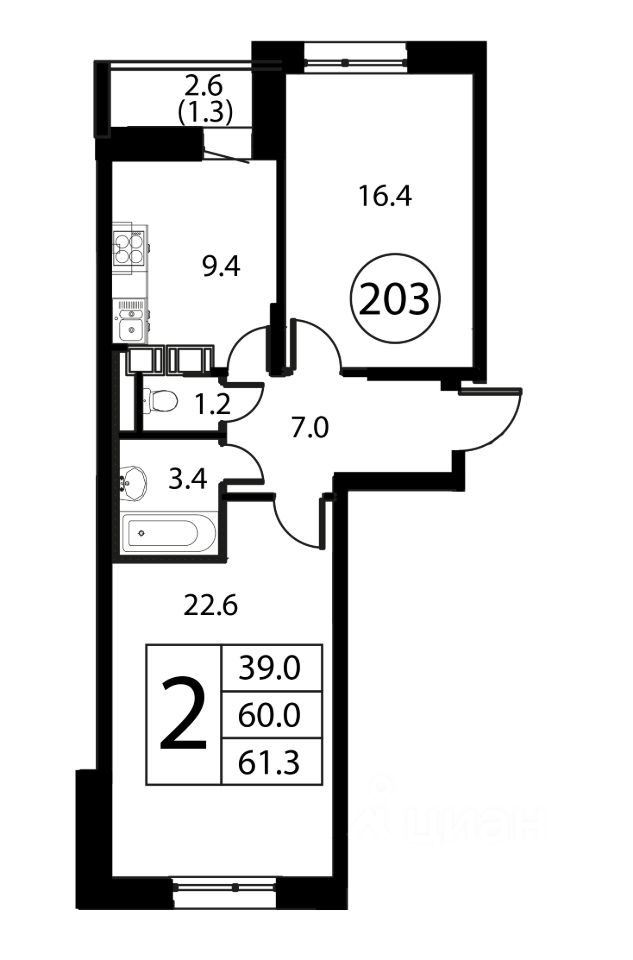Общая площадь61,3 м2