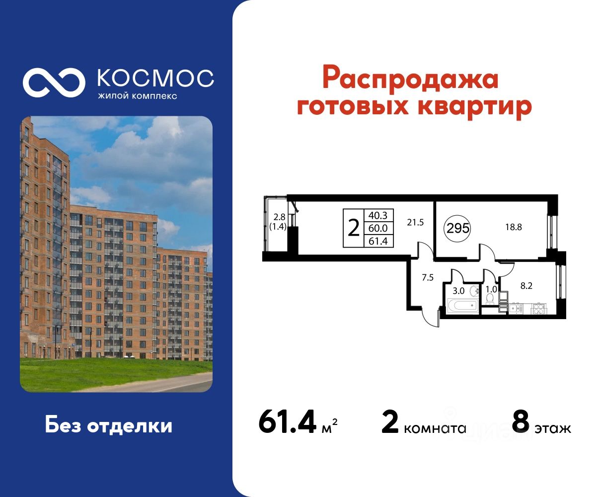 Общая площадь61,4 м2