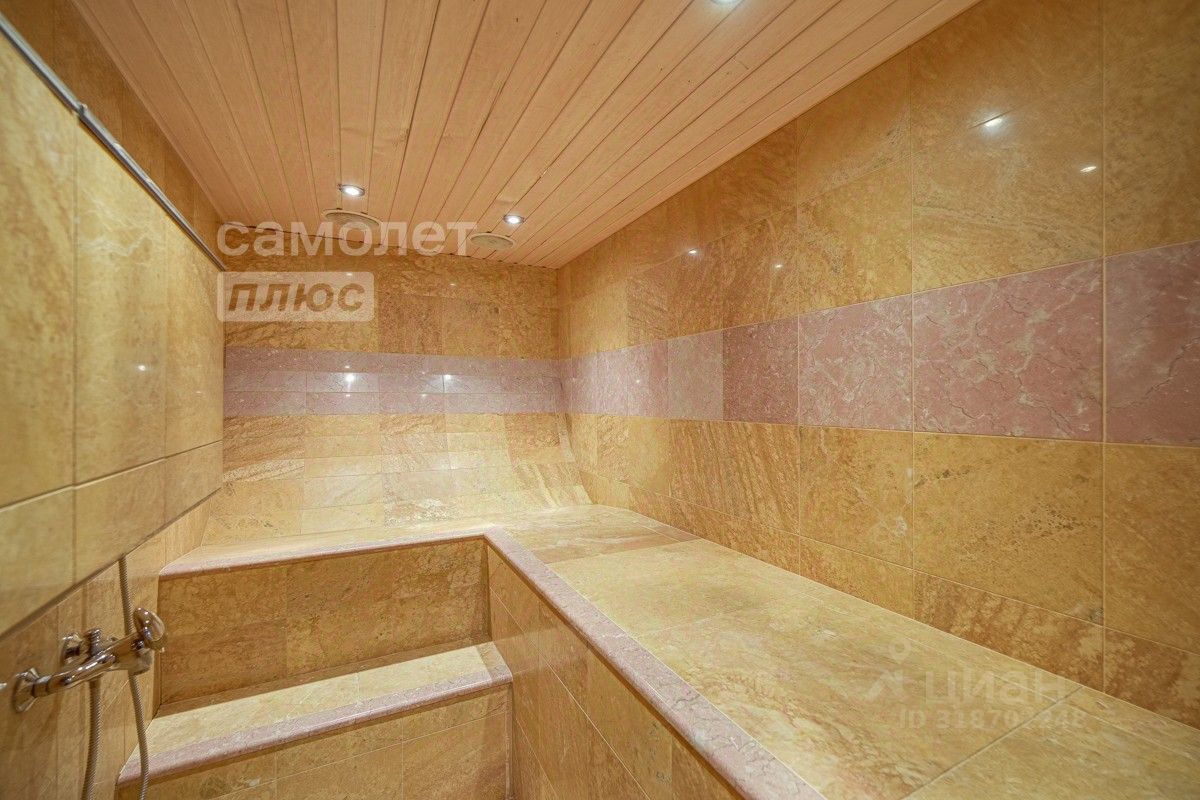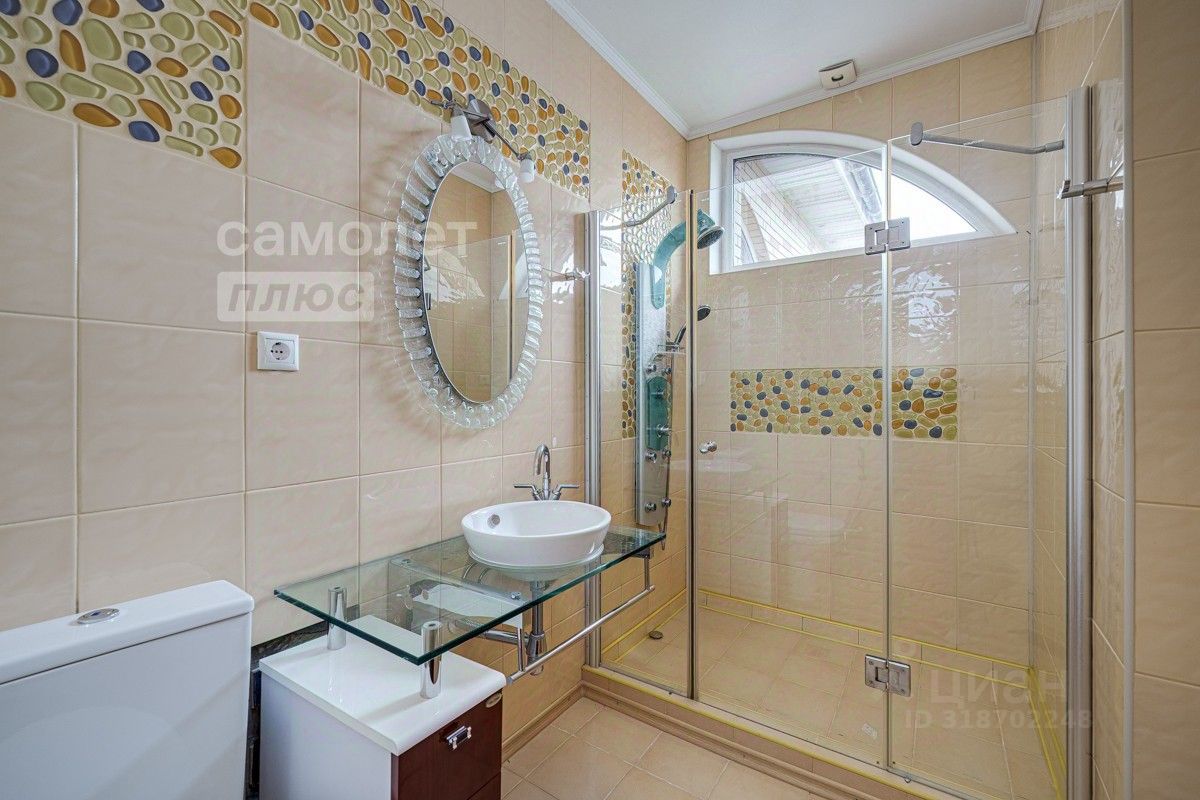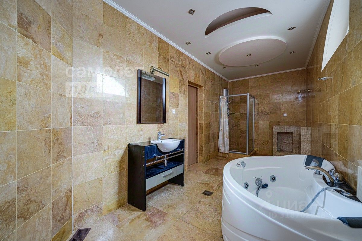 На участке просторное парковочное пространство для нескольких автомобилей, въезд на участок обеспечивают пара автоматических ворот, выходящих на разные параллельные улицы, что позволяет с комфортом пользоваться парковочным пространством. Пространство дома, площадью 482,4 кв. м (по ЕГРН), грамотно организовано. Особый шарм убранству дома придают элементы дизайна и декора. Дом полностью оборудован мебелью и техникой высокого качества. В дизайне применены натуральные отделочные материалы, в том числе качественный паркет из бамбука, вместо керамической плитки применяется натуральный камень травертин.