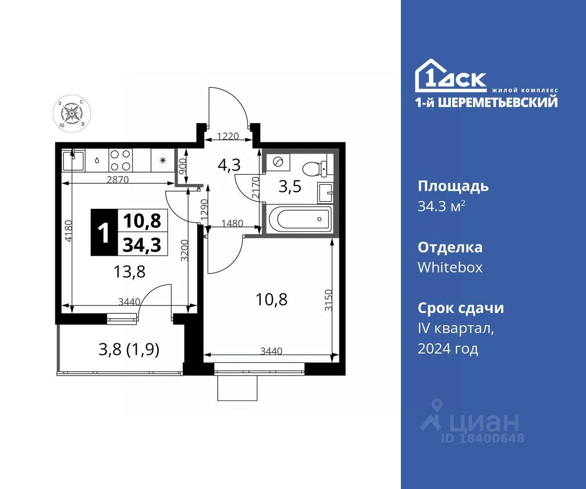 Общая площадь34,3 м2