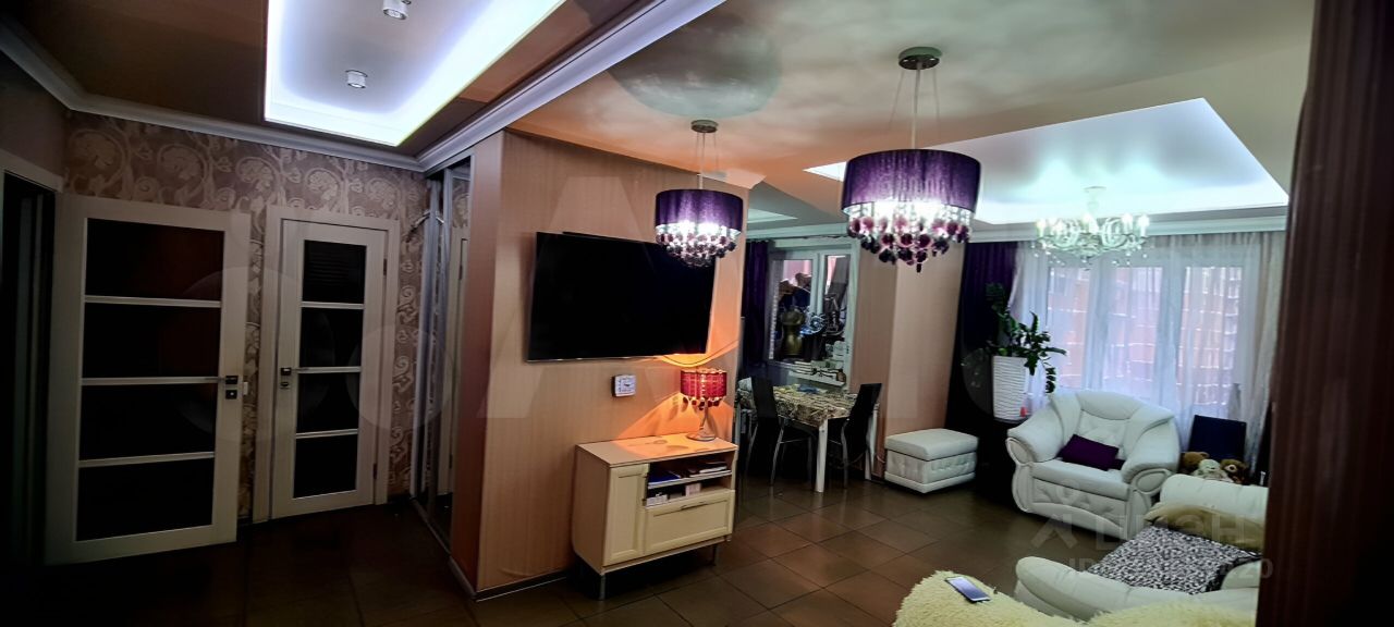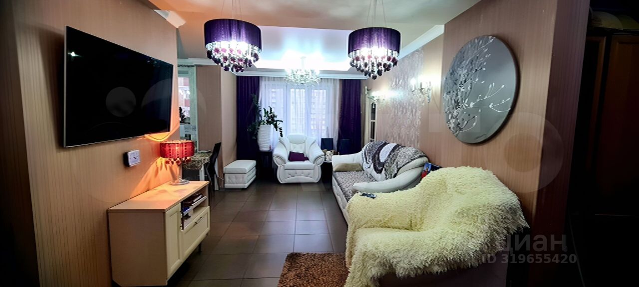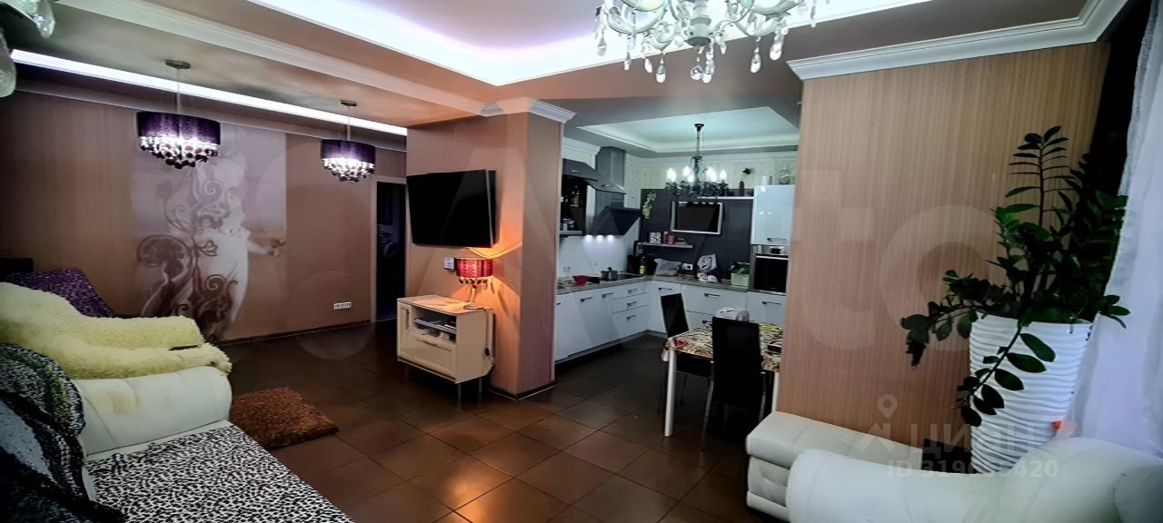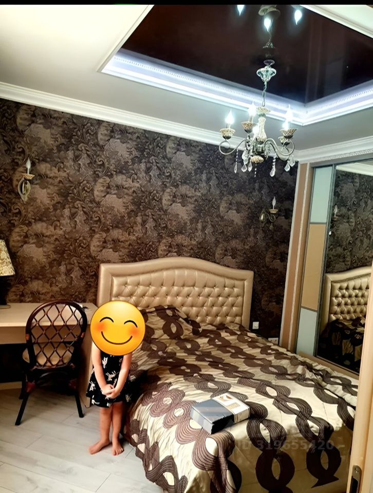 Общая площадь 80,7 кв. м, кухня-гостинная 27 кв. м., комнаты 14,9 и 14,4 кв. м., сан. Узел совмещенный, застекленная и утепленная лоджия. Полы в кухне-гостинной и холле с подогревом. В комнатах установлены кондиционеры. Кухня и встроенные шкафы и техника остаются, остальная мебель остается по договоренности. Квартира тёплая и светлая, окна выходят во двор на детскую площадку и на школу.