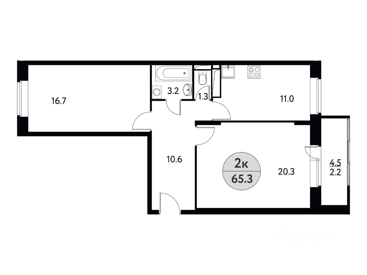Общая площадь65,3 м2