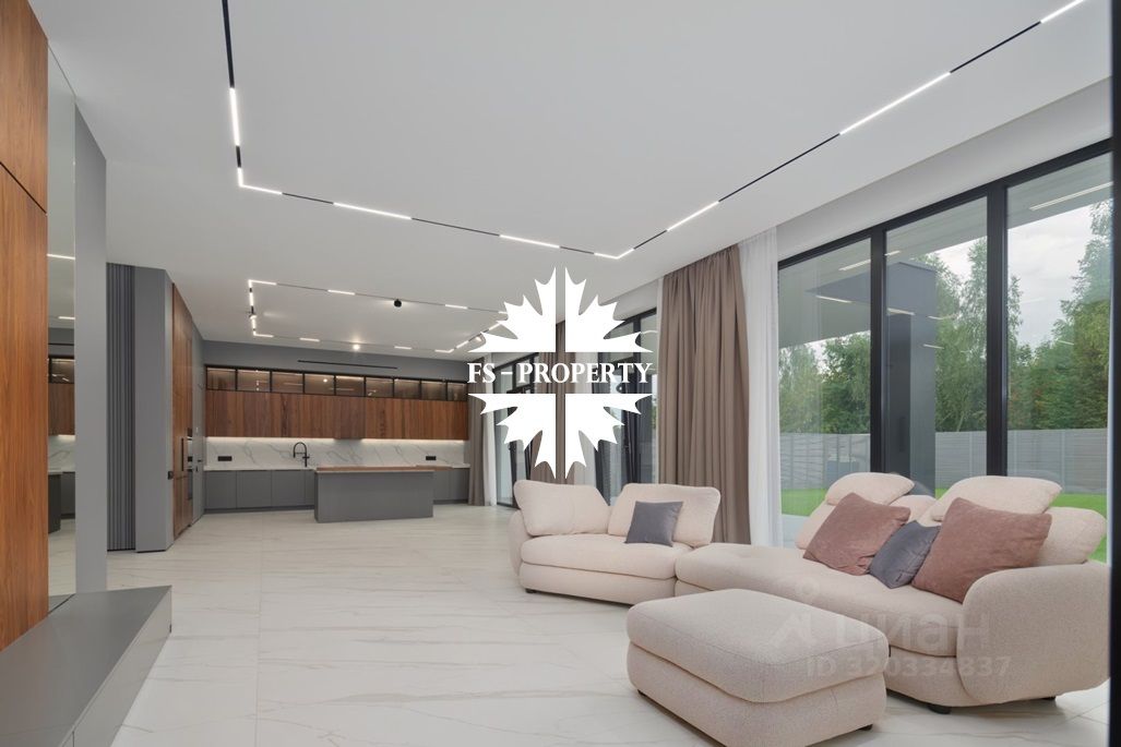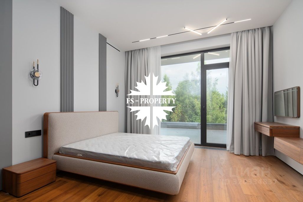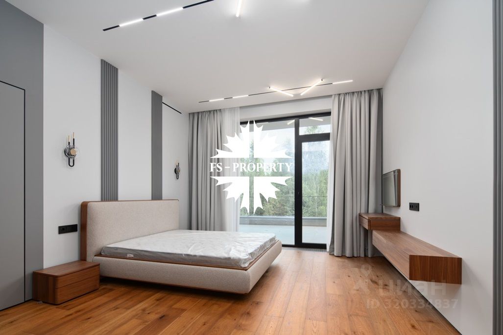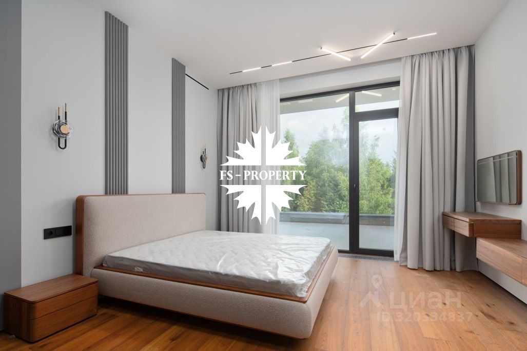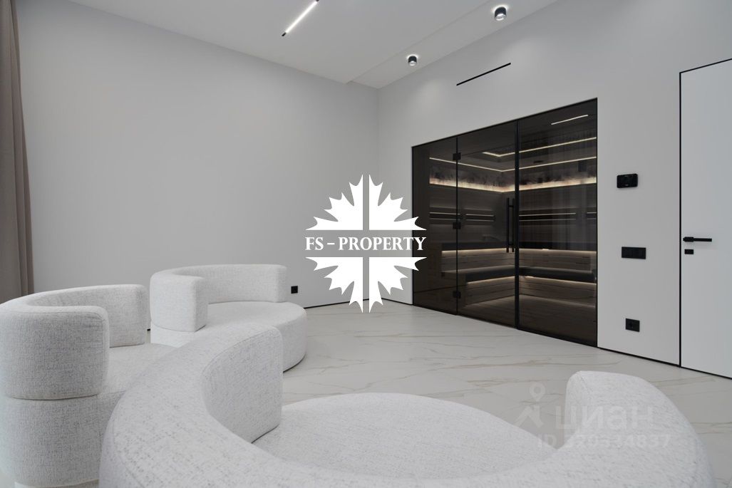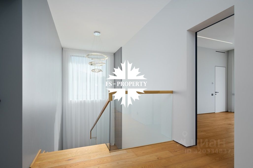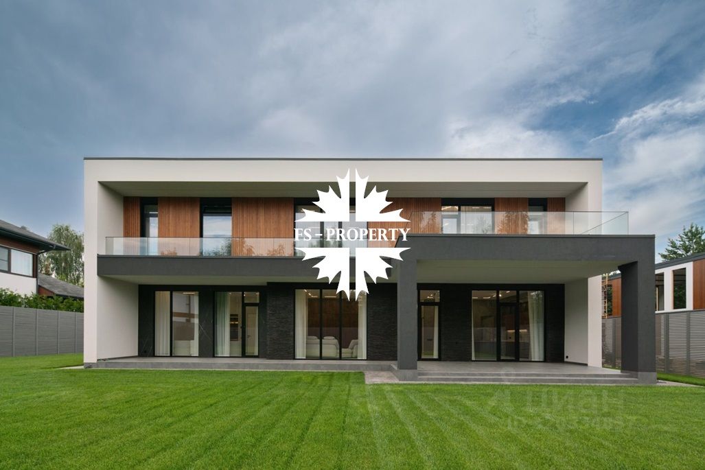 Площадь дома 604 кв.м., 16 соток участок, на участке газон. Высажены небольшие деревья. В доме предусмотрено 5 спален, 7 санузлов, гардеробные, кухня-столовая, гостиная с камином, СПА-зона с сауной, балкон, терраса.