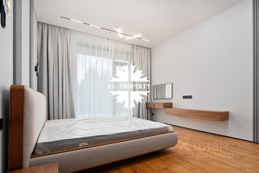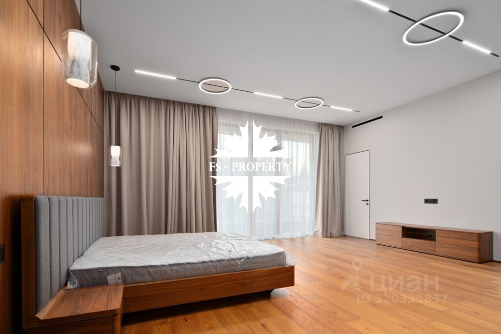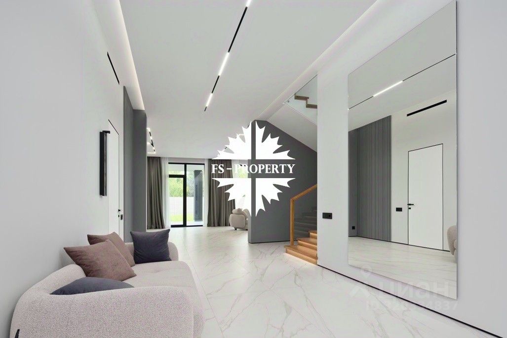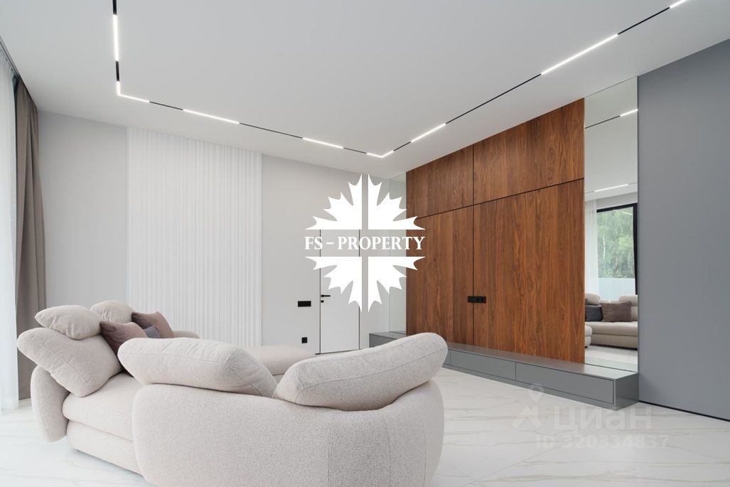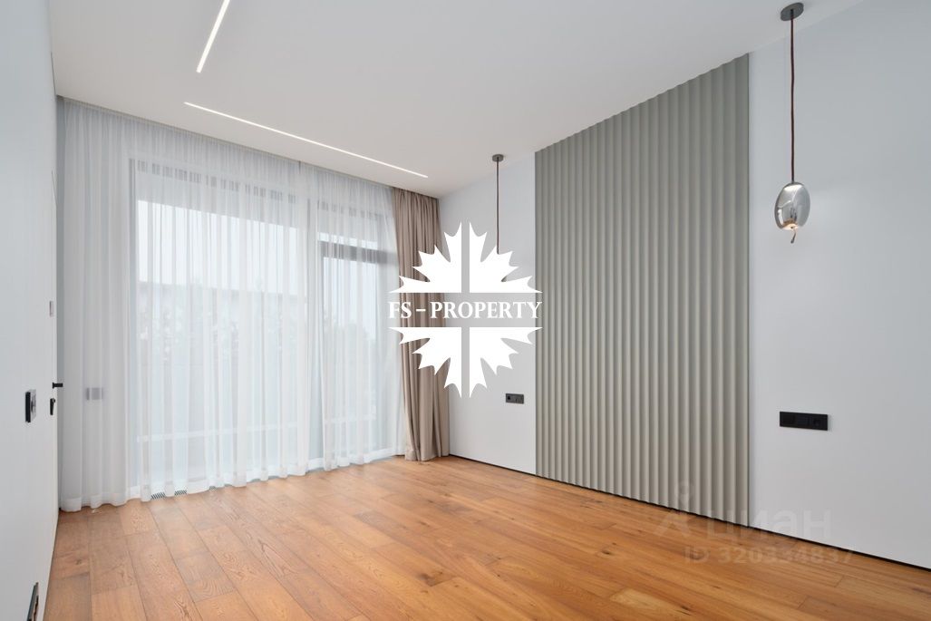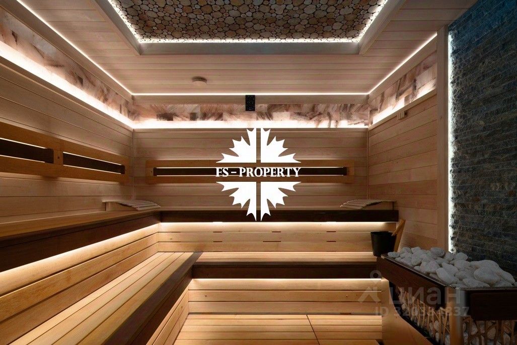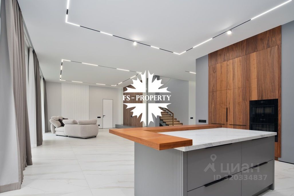 Площадь дома 604 кв.м., 16 соток участок, на участке газон. Высажены небольшие деревья. В доме предусмотрено 5 спален, 7 санузлов, гардеробные, кухня-столовая, гостиная с камином, СПА-зона с сауной, балкон, терраса.