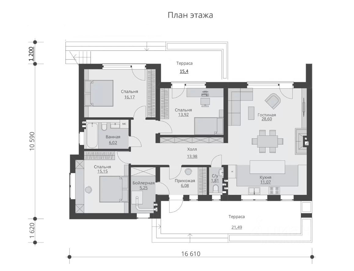 Уникальное предложение! Продается новый строящийся коттедж поселке Загорянский ''. Срок сдачи - 5 месяцев с момента заключения договора подряда. Подрядчик аккредитован в Сбербанке и Дом.рф Подходит под Семейную ипотеку Площадь коттеджа 118 кв.м. + 2 открытые террасы площадью 36 кв.м. + терраса на кровле 40 кв.м. Коттедж имеет уникальное месторасположение. С одной стороны он находится всего в десяти минутах ходьбы (780 кв.м.) от железнодорожной Станции Загорянская, что позволяет в течение 40 минут, на общественном транспорте, добраться до центра г. Москвы. С другой стороны он расположен внутри зеленого, тихого престижного и респектабельного района загородной застройки с высоким уровнем комфортабельности и полной набором городской инфраструктуры. Участок, по периметру, огорожен высоким сплошным забором, что позволяет создать у себя на участке зону приватности и тишины и безопасности. Отдельные автоматические въездные ворота, на участок, делают въезд на участок максимально комфортным. Адрес Дома - пос. Загорянский Щелковского района ул. Ленина дома 31: Дом сдается в течение 5-ти месяцев с момента заключения договора. Красивое, живописное место, до реки Клязьма 20 минут пешком (2 км), чистый песчаный пляж. Легендарное стародачное место, где уже несколько поколений проживают семьи деятелей искусств, творческой интеллигенции, космонавтов. Участок 4,4 сотки, огорожен евроштакетником, смонтированы автоматические въездные ворота. Дом сдаются без внутренней отделки, с подключенными к центральным коммуникациям газом, водоснабжением, электричеством. Канализация - септик. (За дополнительную плату возможно заказать и включить в ипотечный договора любые дополнительные виды работ по внутренней отделке помещений, в любой комплектации (штукатурка, стяжка, теплые полы, разводка, вайт бокс, любые чистовые работы и т.д.) Расстояние от МКАД - 16 км. Подъезд по Ярославскому шоссе так же возможен подъезд по Щелковскому шоссе. До ж/д платформы ''Загорянская'' 10 минутах пешком. 10 мин езды до г. Королева, 5 мин. до г. Щелково, от Москвы 16 км по Ярославке. Категория - земли поселений. Прописка. Дом выполнен в современном стиле - Хайтек . Его отличительной чертой является сочетание современного фасада, функциональность внутренних помещений и и высокий уровень комфорта(большое количества света и объема). Просторные светлые комнаты с удобной планировкой и большими панорамными окнами. Оптимальная планировка. Кухня-гостиная 41 кв.метр с панорамным окном, выходящим на террасу. -Фундамент - монолитная железобетонная плита. -Стены - пеноблок или кирпич 30 см, утеплитель 5 см, Фасад- штукатурка, покраска и частично плитка или облицовочный кирпич евроформата (см фасады) За дополнительную плату возможна замена облицовки фасада(плитка, клинкер, облицовочный кирпич и т.д.), а так же покрытие кровли на мягкую. -Кровля - металлочерепица, утеплитель - минвата 20 см, Перекрытия - сборный ж/бетон, внутренние перегородки - пеноблок -10 см.