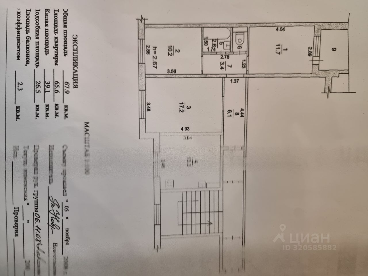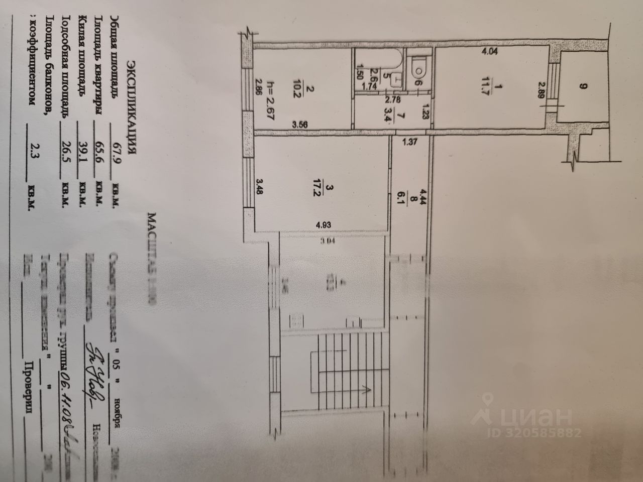 Общая площадь 67.9 кв.м. Большая лоджия