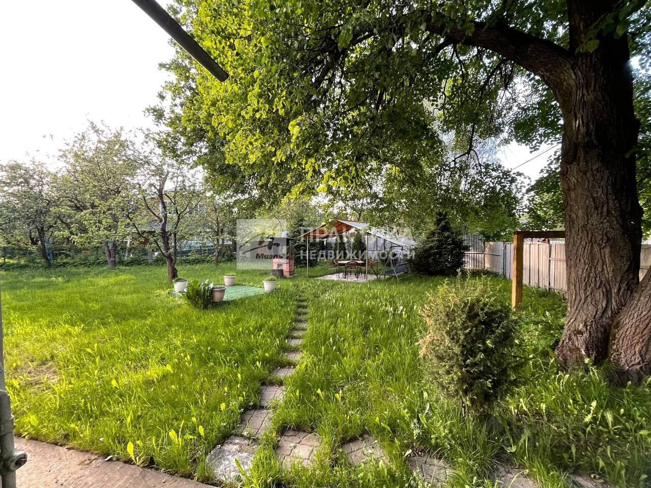 На участке гараж, сарай, растут яблони, вишня, слива, смородина.
