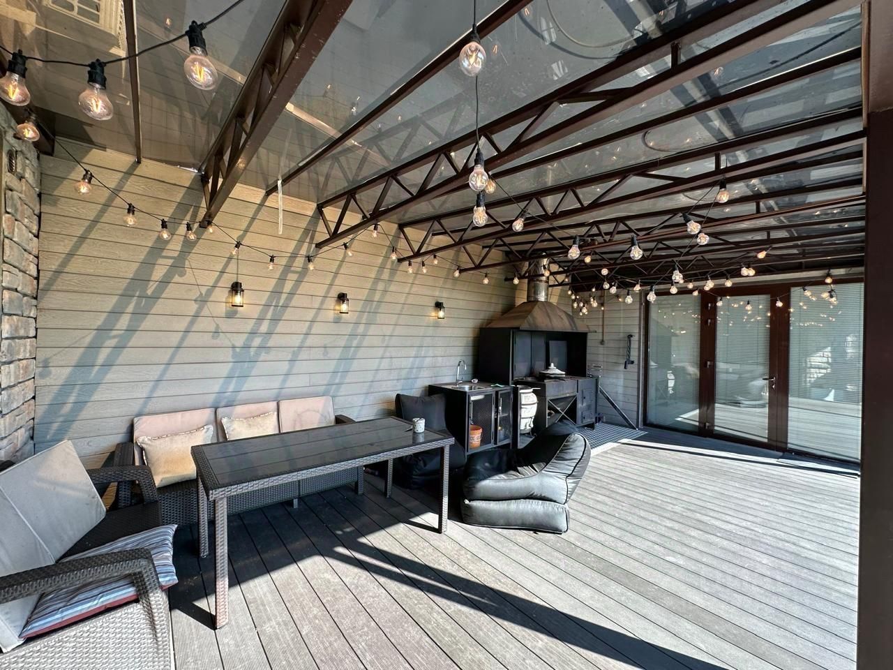 Срочная продажа! Цена снижена!!! Продается таунхаус в КП Варежки - 2 в экологически чистой зоне Национального парка Лосиный Остров! Внутренняя площадь таунхауса - 120 кв. м., а также мансарда площадью 30 кв. м. Также на участке есть баня с купелью со своей кухней и комнатой отдыха , крытая терраса с зоной барбекю , гараж и котельная. Таунхаус полностью оборудован и готов для проживания. В 2021 году сделан дизайнерский ремонт. Таунхаус продается со всей мебелью и техникой. 1 этаж: просторная кухня с отдельной столовой зоной и гостиной. Также из гостиной есть выход на оборудованную веранду с диванной зоной, мангалом и на участок. Для удобства на этаже также расположен сан узел с душем и кладовая комната. 2 этаж: 3 спальни, большой санузел с ванной 3 этаж: большая мансарда с гостиной и спальной зоной, рабочей зоной и сан узлом с душем. Таунхаус оборудован сплит-системой кондиционирования. Установлены современные оконные системы: двухкамерные стеклопакеты на ПВХ профиле с повышенной шумоизоляцией. Фундамент: железобетон. Стены - газосиликатный блок, утеплены. Фасад отделан термопанелями. Кровля: металочепица с гидроизоляционной пленкой и кабельным подогревом для стаивания снега. Электричество 15 кВт. Центральная канализация. Магистральный газ. Водоснабжение осуществляется от автономного водозаборного узла глубиной 124 метра. Участок площадью 4,3 сотки, на котором поместились крытая веранда с зоной барбекю и баня с купелью и гостевой комнатой с кухней. На участке засеян газон, высажены туи и другие декоративные растения. Также поведена система автополива всех растений. Территория стоянки у дома асфальтирована, дорожка к дому уложена брусчаткой, ограждение дворовой части выполнено металлическим евроштакетником высотой 1,5 метра. В поселке есть фитнес центр с бассейном, гостевая автостоянка, мини-маркет, детские и спортивные площадки, отдельный выход в лес. Территория поселка под охраной. Коттеджный посёлок в живописном месте, окружен лесным массивом. Время в дороге от МКАД до коттеджного посёлка Варежки - 20-25 минут по Щелковскому шоссе (17 км) или 30 мин по Ярославскому (19 Км), так же у Вас есть возможность воспользоваться электричкой от Ярославского вокзала. От поселка до шоссе - около полутора километров по асфальтированной дороге. В непосредственной близости поселка находятся деревни Супонево и Оболдино (1 км), города Королев (7 км) , Щелково (5 км), где Вы сможете найти необходимые вам учреждения сферы услуг, образования, здравоохранения и спорта.