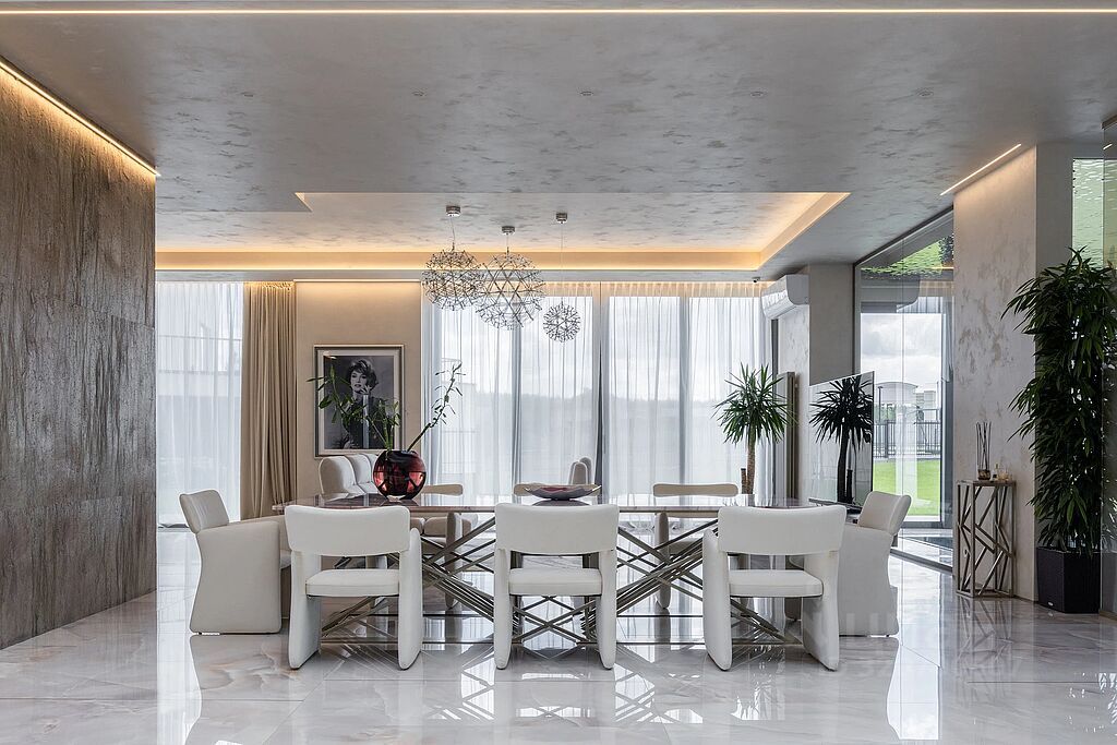 Шикарные хозяйские апартаменты 190 кв.м, бассейн, сауна, кинотеатр, тренажерный зал, бильярдная, второй свет. В отделке используются дорогие материалы, современные решения, премиальный бренды. На участке расположен гараж 110 кв.м с зимней барбекю-зоной и комнатой персонала.