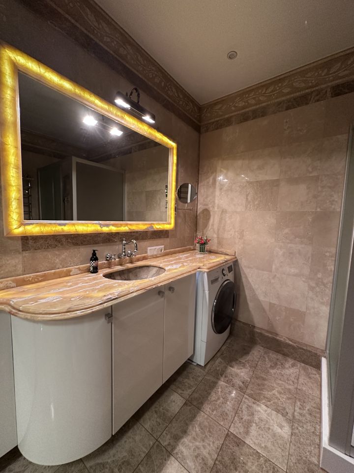 В квартире качественный, дизайнерский ремонт. Укомплектована всей необходимой мебелью и бытовой техникой для Вашего комфортного проживания. Всё в рабочем состоянии.