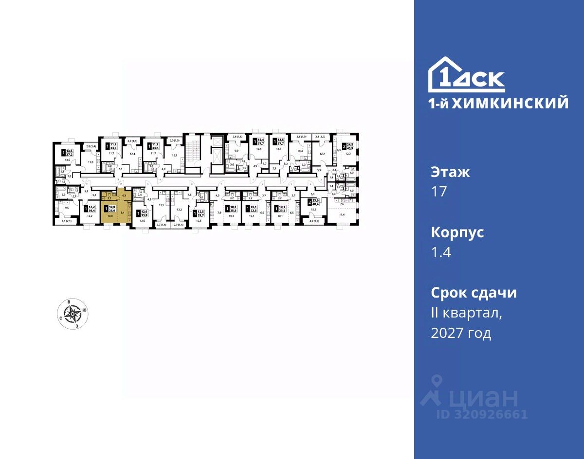 Семейная ипотека без наценки со скидками до 21% до конца августа! Прямая продажа от застройщика! Жилой Комплекс класса Комфорт. Продаётся студия номер 220 общей площадью 25.6 кв.м на 17-м этаже 17 этажного дома. Отделка Whitebox.
