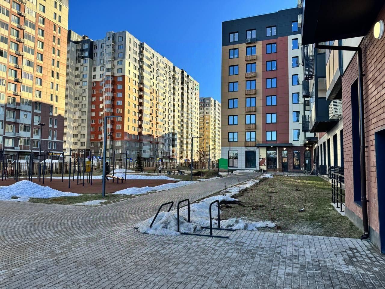 Дворы жилого комплекса тихие и безопасные, полностью огорожены от машин и проезжей части.