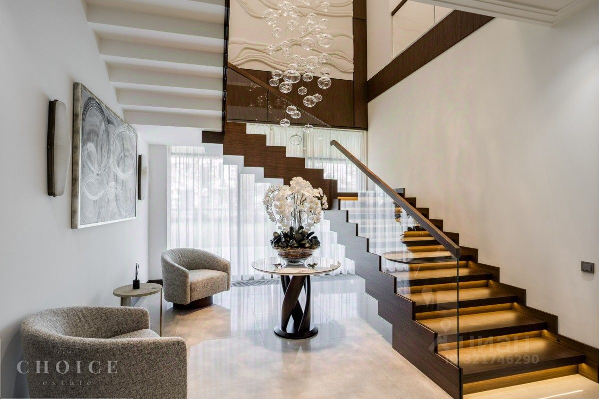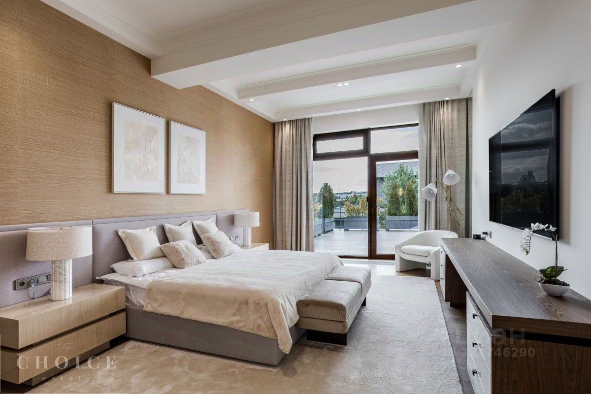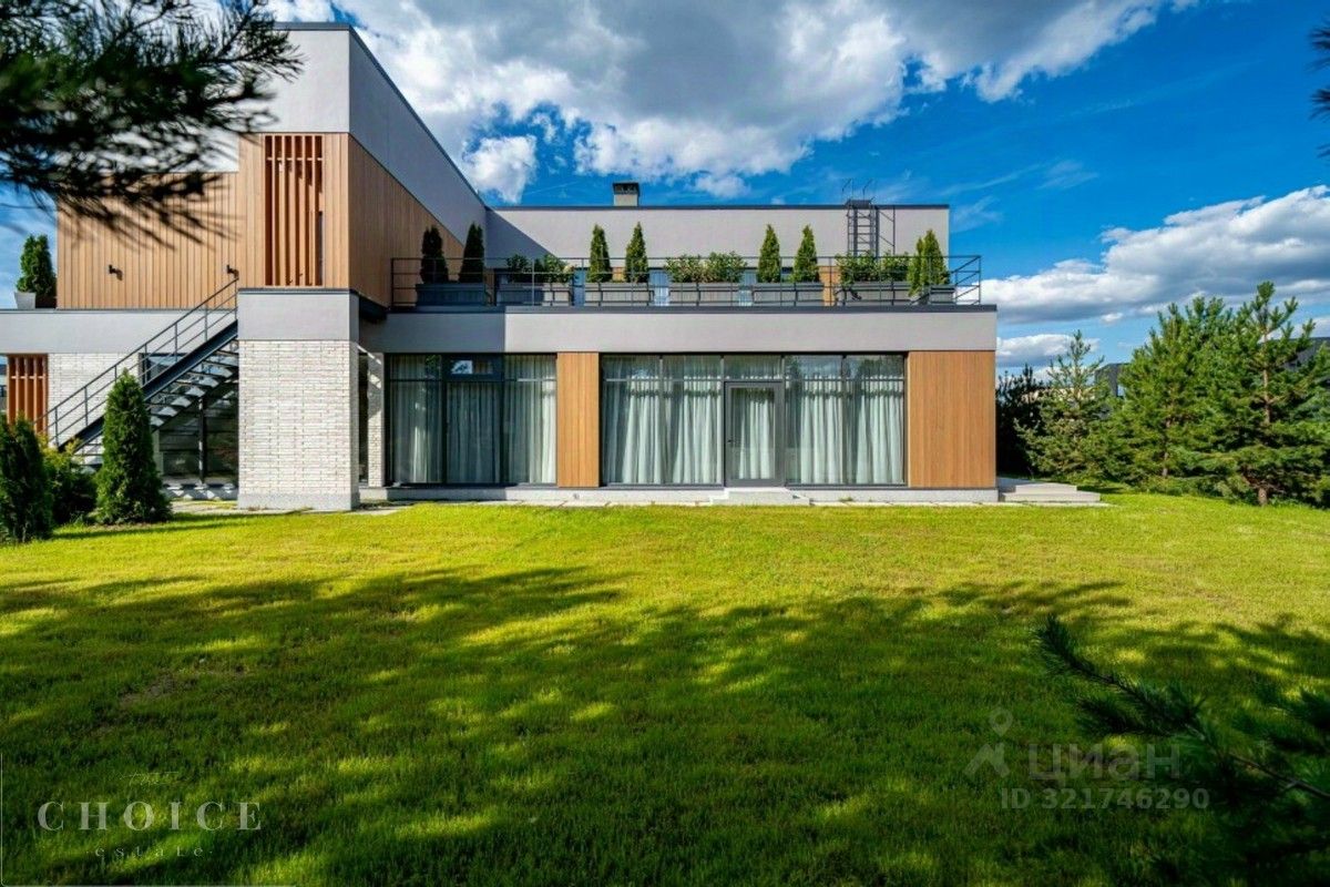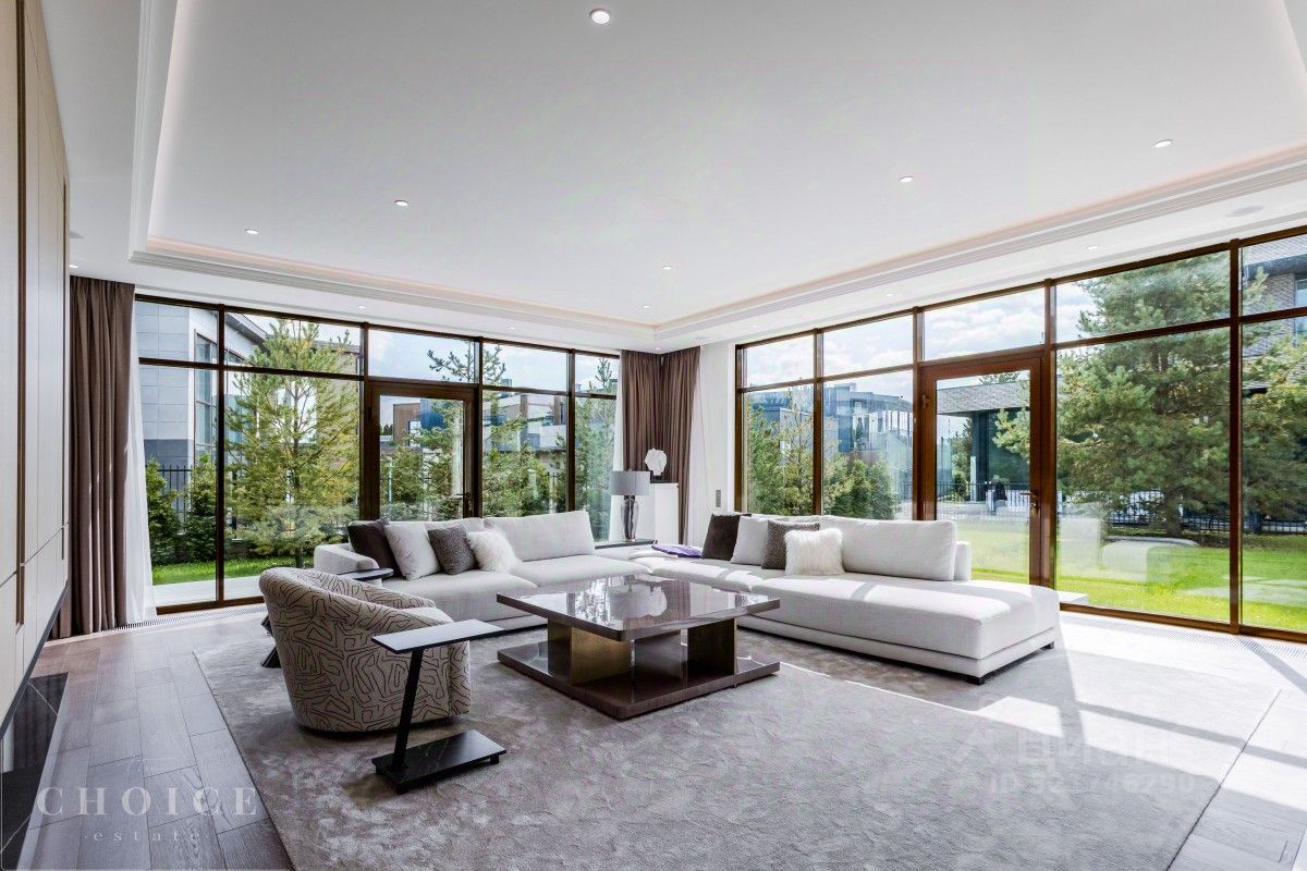 Лот 42945. Современный дом площадью 730 кв.м. на ухоженном участке 23 сотки в живописном коттеджном поселке ''Резиденции Березки''. 1 этаж: гардеробная - 2шт., холл, Столовая с выходом на террасу, кухня, гостиная, санузел, кабинет, постирочная, котельная, гараж 2 этаж: спальня с гардеробной и санузлом - 4шт., помещение свободного назначения, блок для персонала