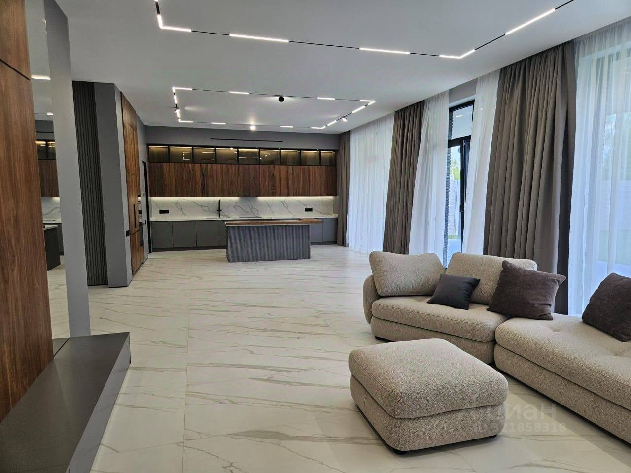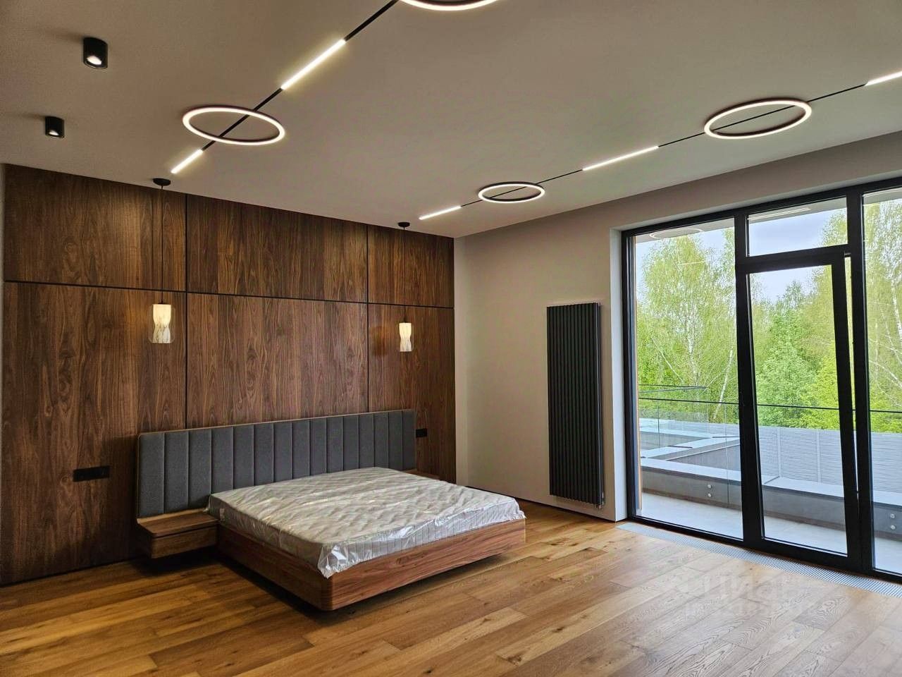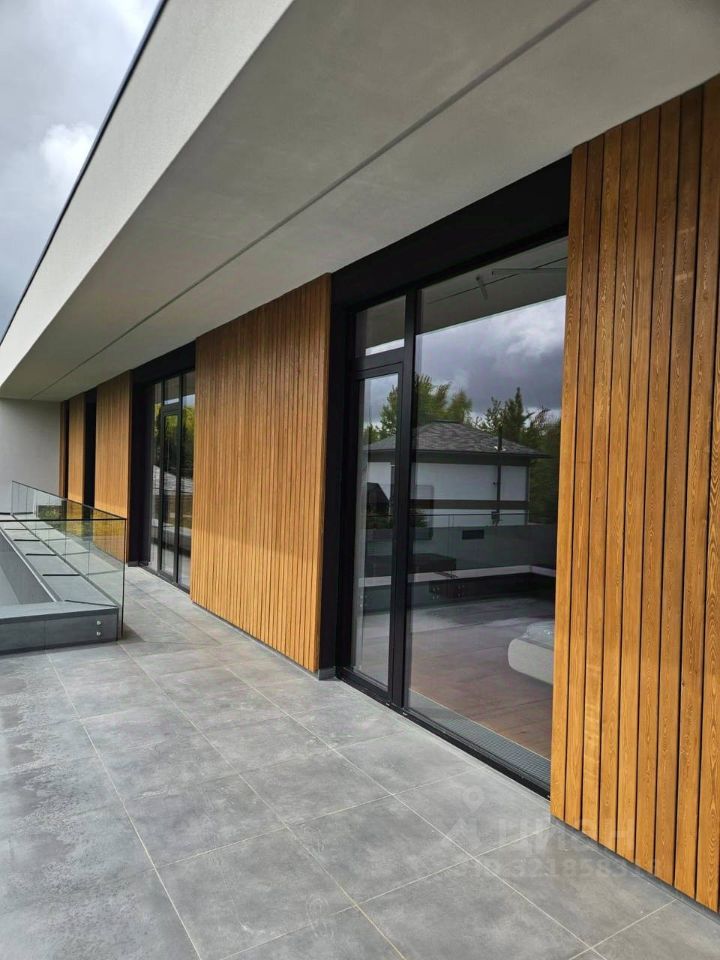 - Панорамное остекление, наполняющее интерьер светом. - Современная функциональная планировка, удобная для большой семьи. - Участок правильной формы, прилегающий к лесу. - Дом расположен в тихой части посёлка, что обеспечивает приватность и спокойствие.