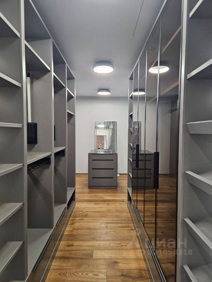 1 этаж: кухня-гостиная, спальня с гардеробной и с/у, прихожая, гардеробная, котельная, гараж на 2 м/м. 2 этаж: 4 спальни, каждая с гардеробной и индивидуальным санузлом.