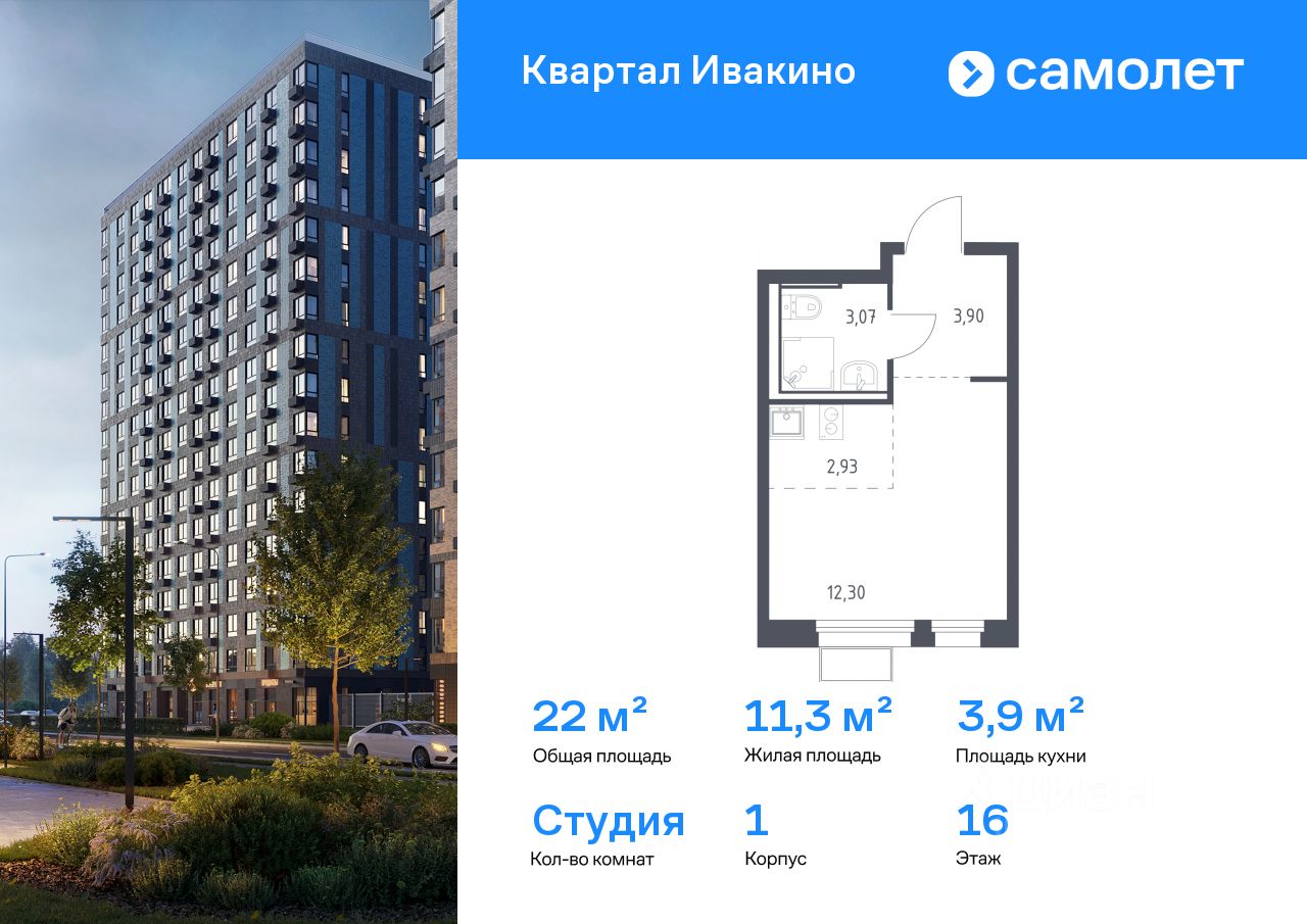 Строим кварталы для жизни с заботой о будущем. Предлагается квартира студия комфорт-класса 22 кв.м в корпусе 1 на 16 этаже, в ЖК ''Квартал Ивакино'' Квартира с чистовой отделкой. Доступность дополнительных опций уточняйте у застройщика.