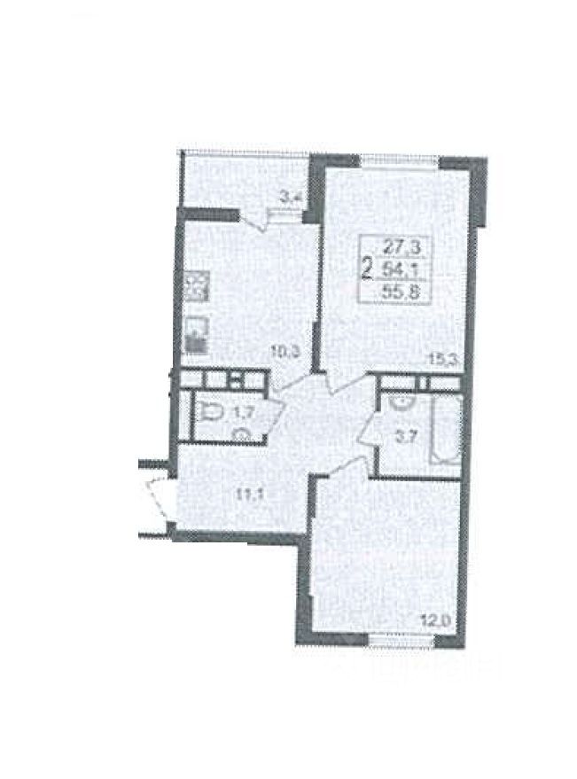 - Жилая площадь 27,3 м² (15,3 и 12)
