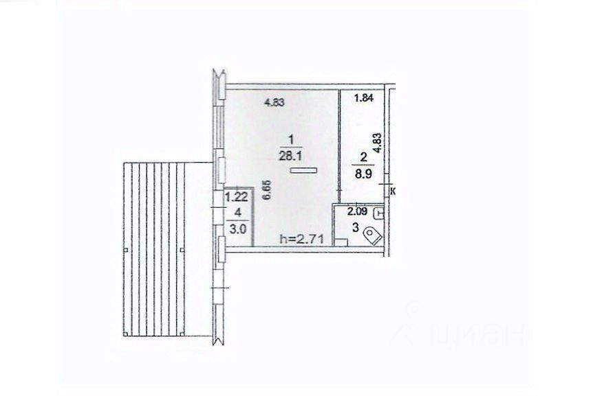 Высота потолка, h= 2.71 м,
