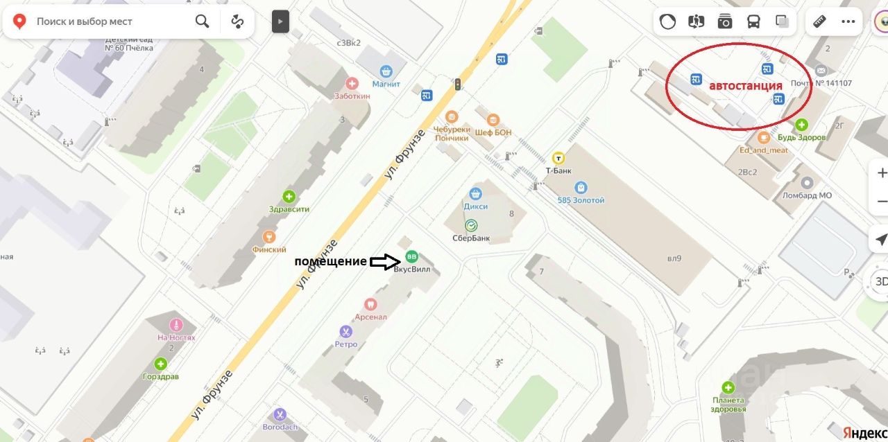 В окружении: Сбербанк, ВкусВилл, Салон МТС, Дикси, Ашан.