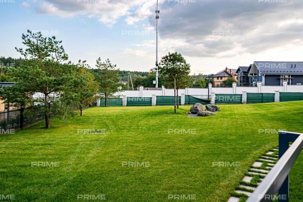 Просторный участок полностью облагорожен, высажены деревья, рулонный газон, установлен автополив.