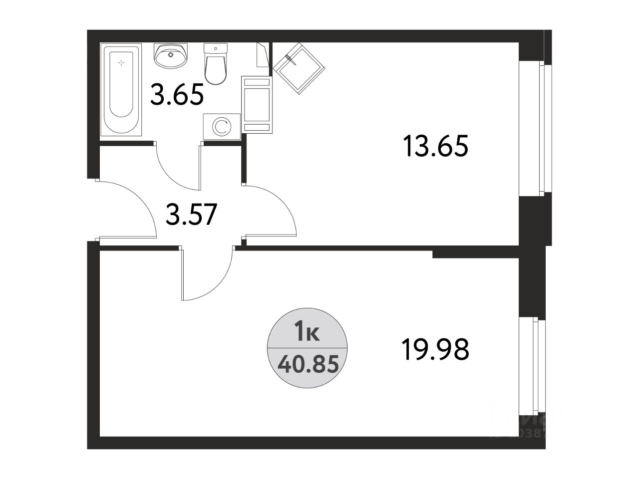 Общая площадь40,85 м2