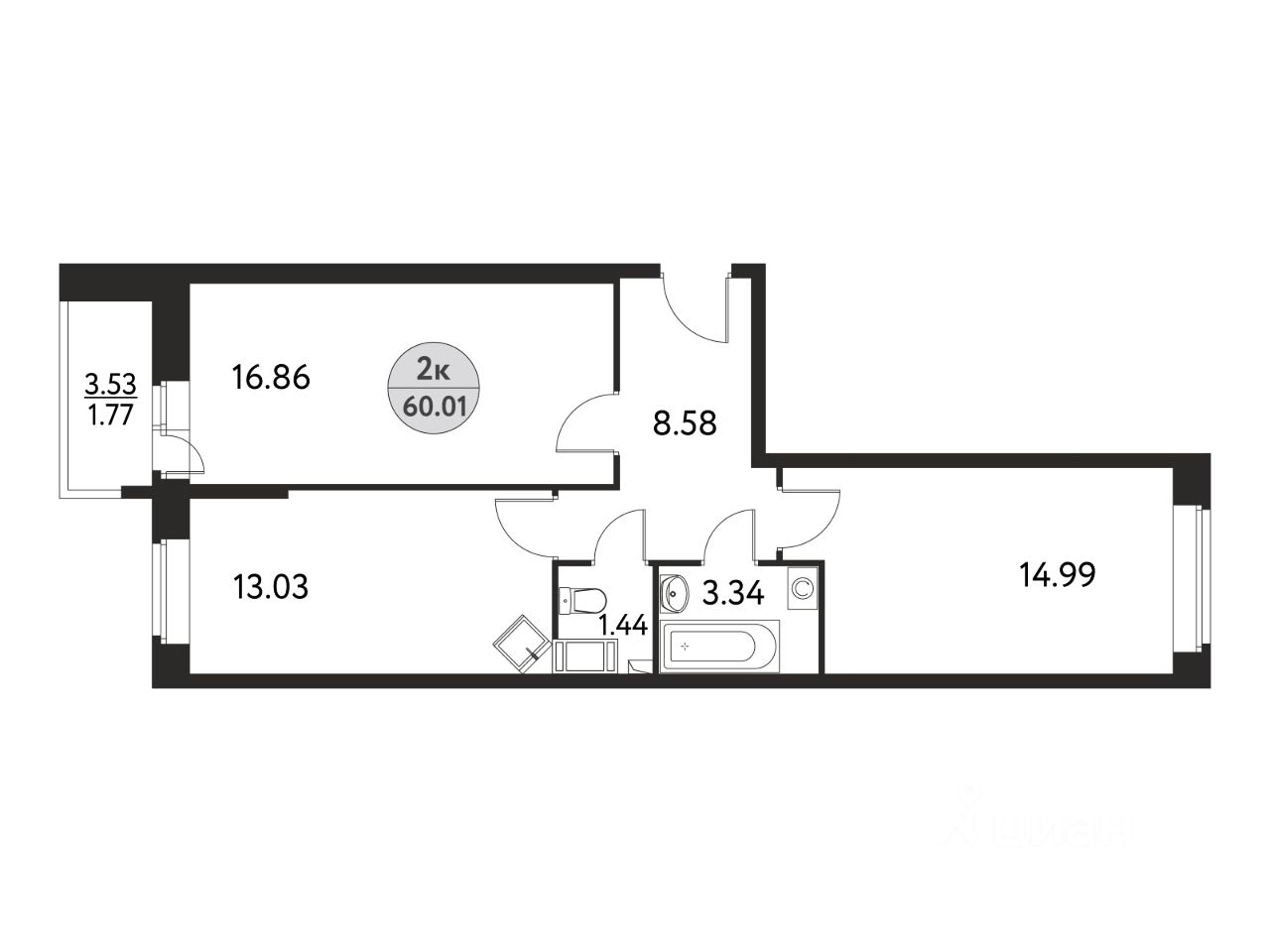 Общая площадь60,01 м2