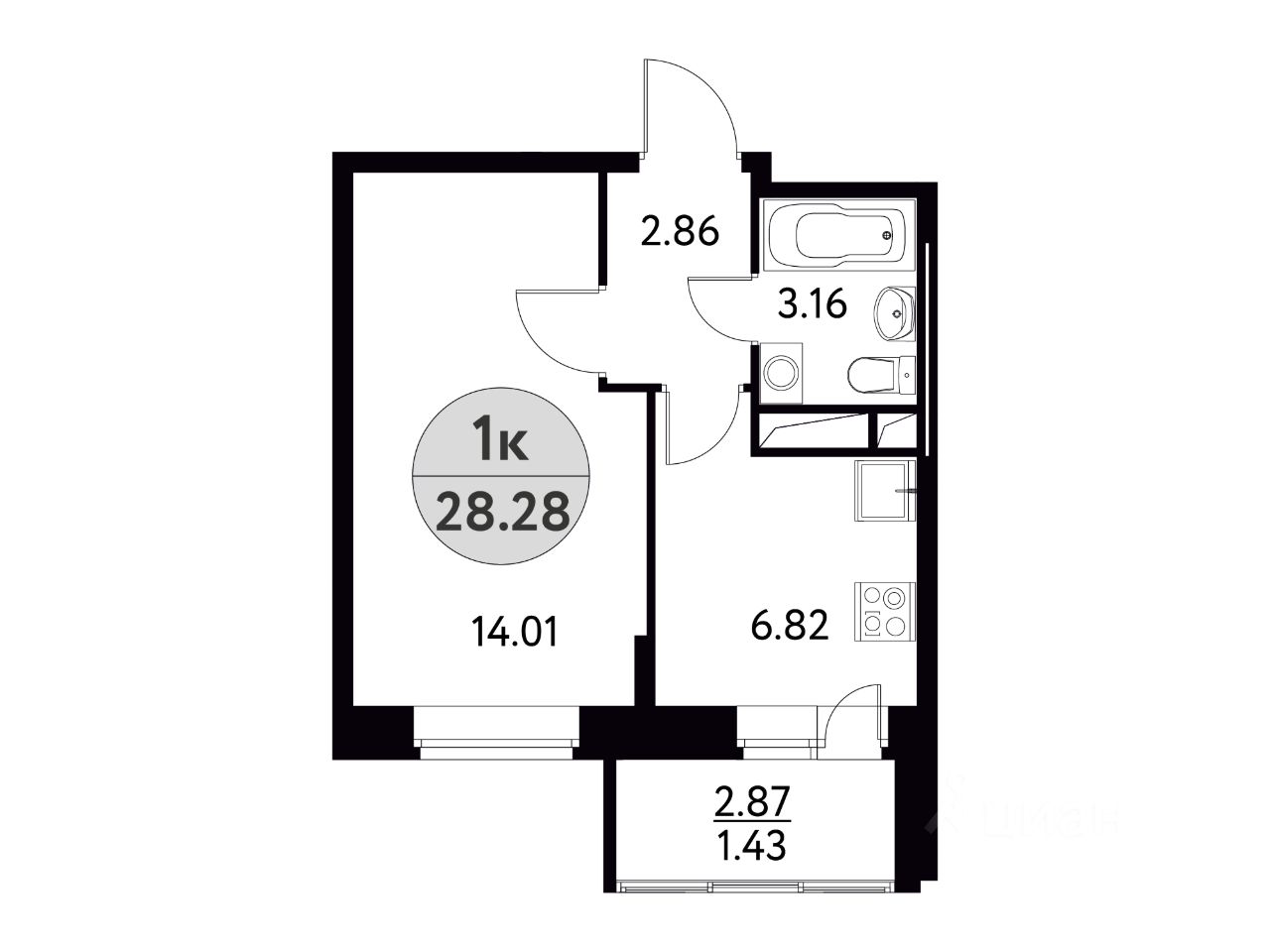 Общая площадь28,28 м2