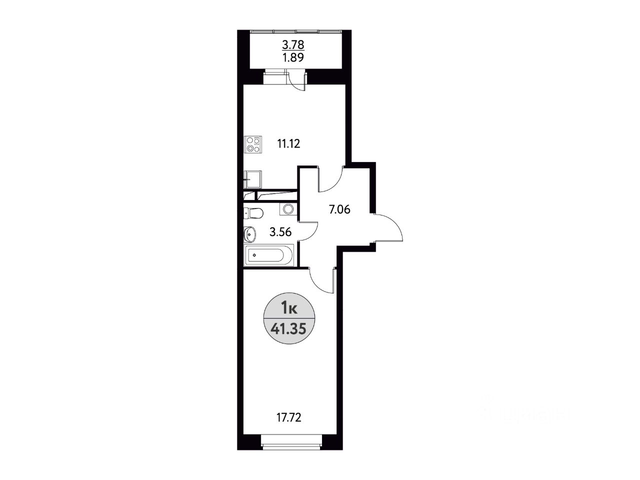 Общая площадь41,35 м2
