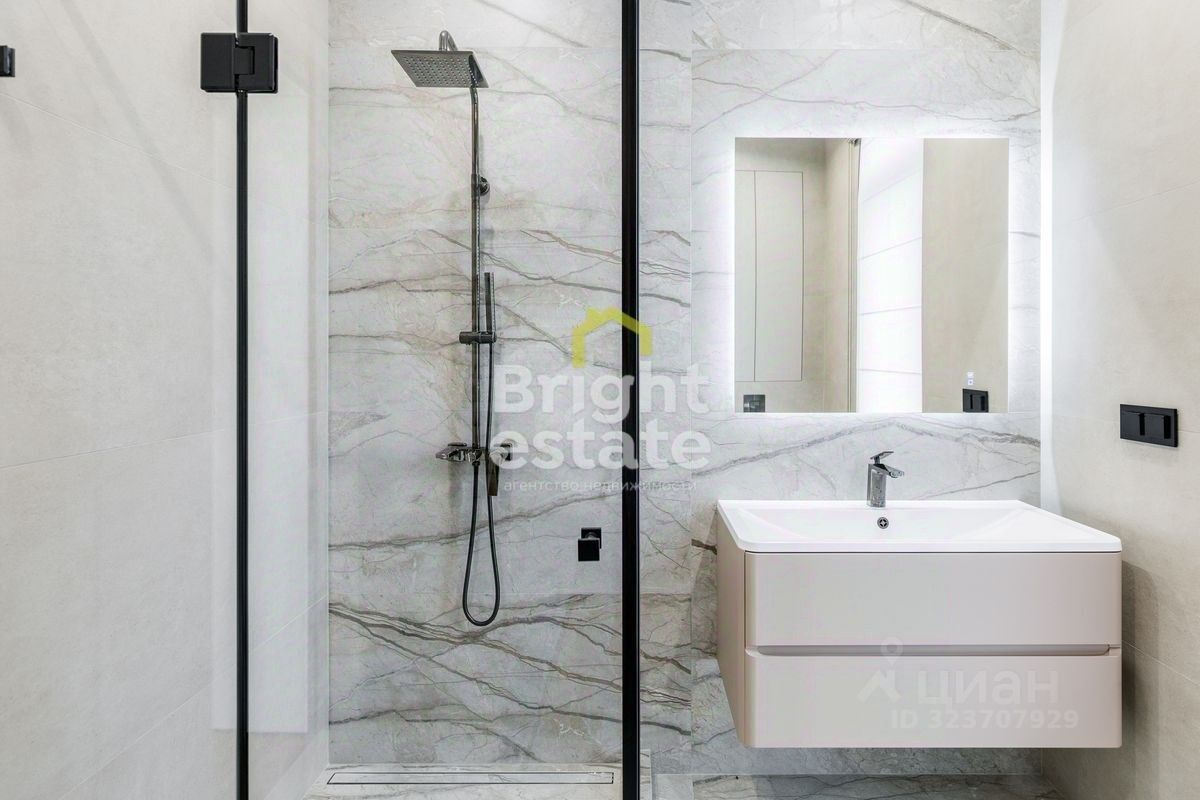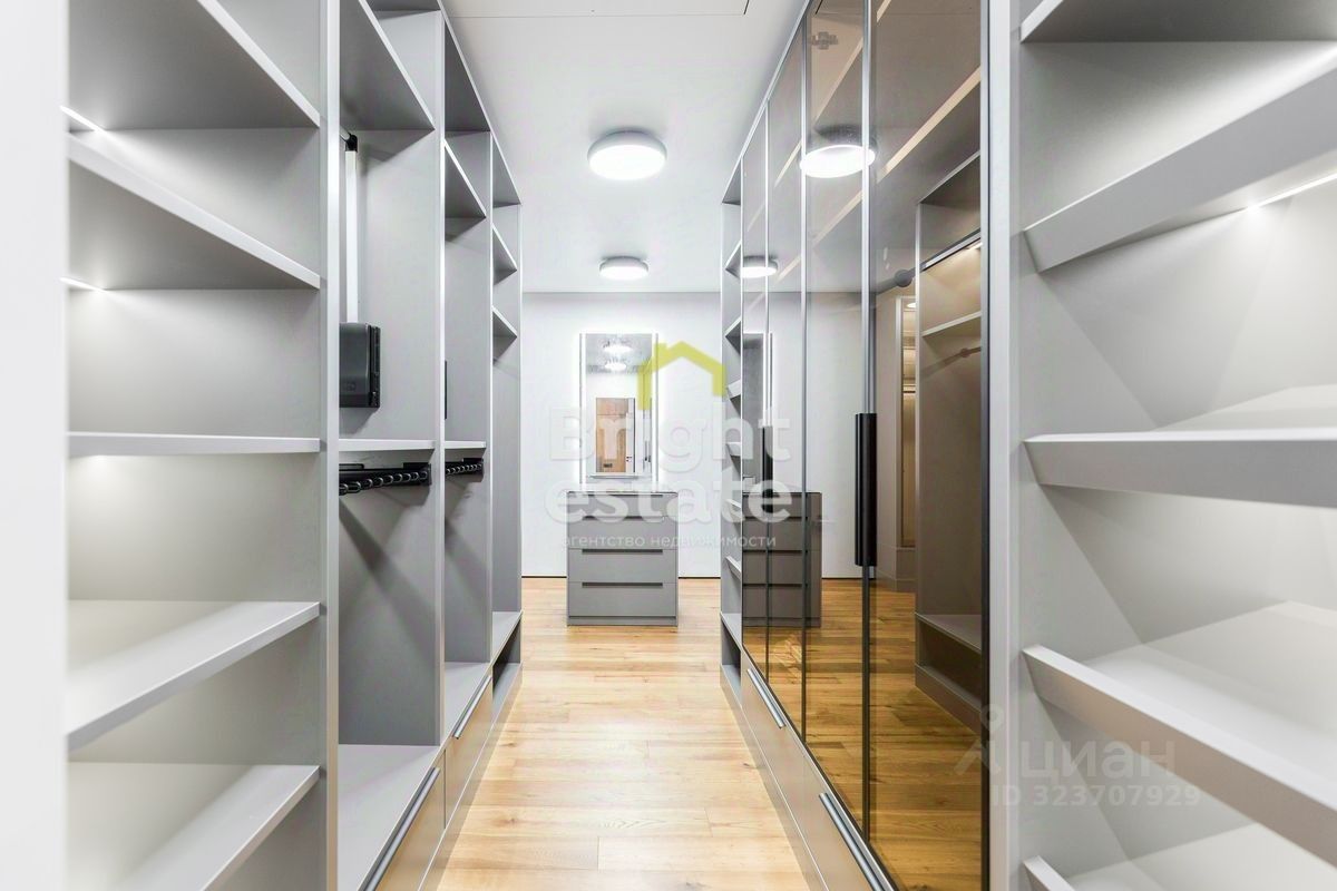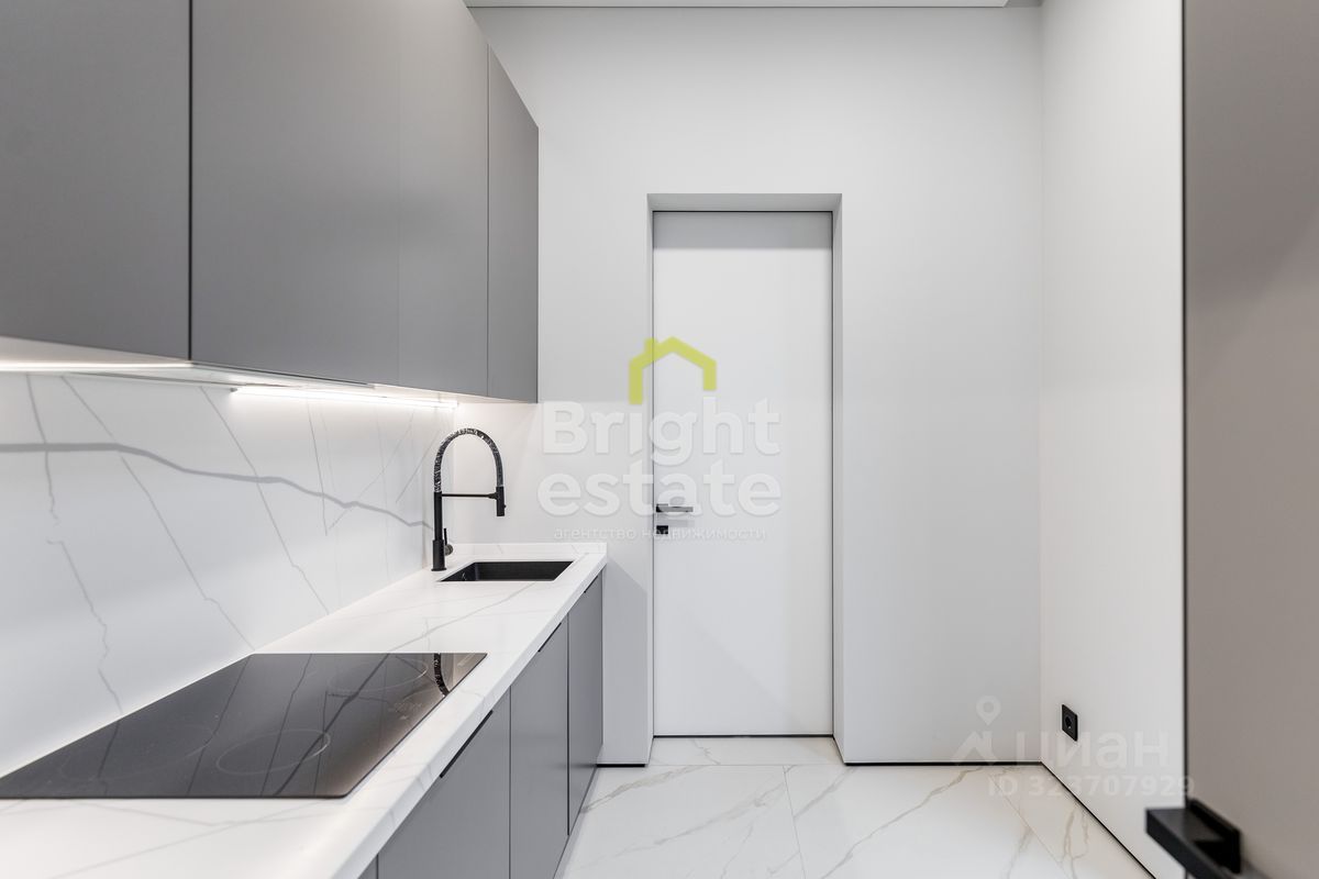 Пространство наполнено светом, интерьер оформлен в спокойных природных тонах с использованием премиальных материалов. Каждая деталь продумана — от дизайнерской мебели и техники до текстур отделки, создающих атмосферу уюта и статуса.