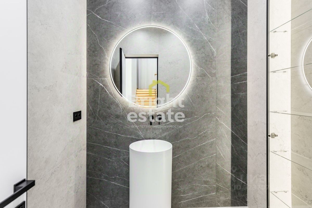 Современный дом 2025 года постройки площадью 605 кв. м. сочетает архитектурную элегантность, панорамное остекление и идеальные пропорции.