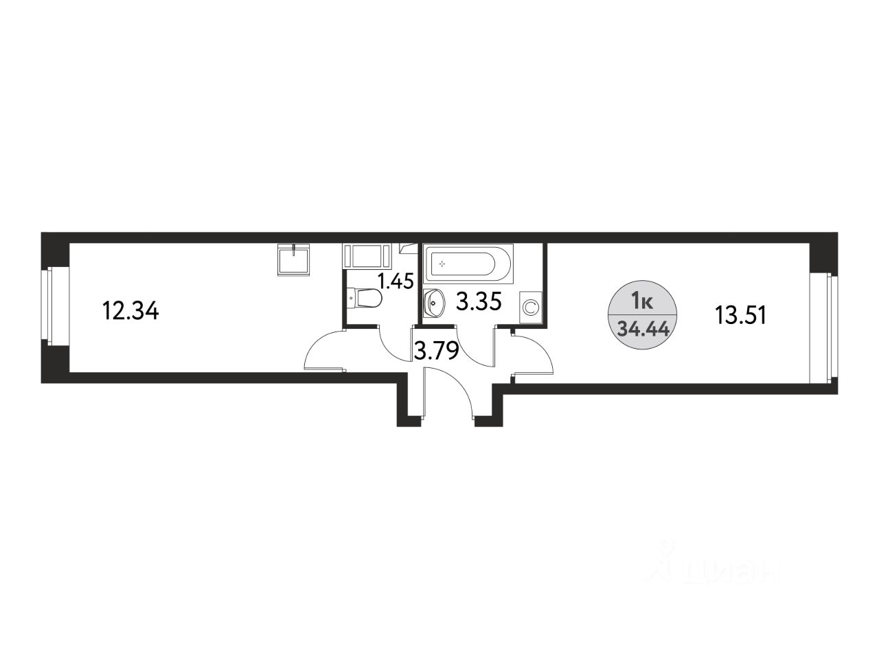Общая площадь34,44 м2