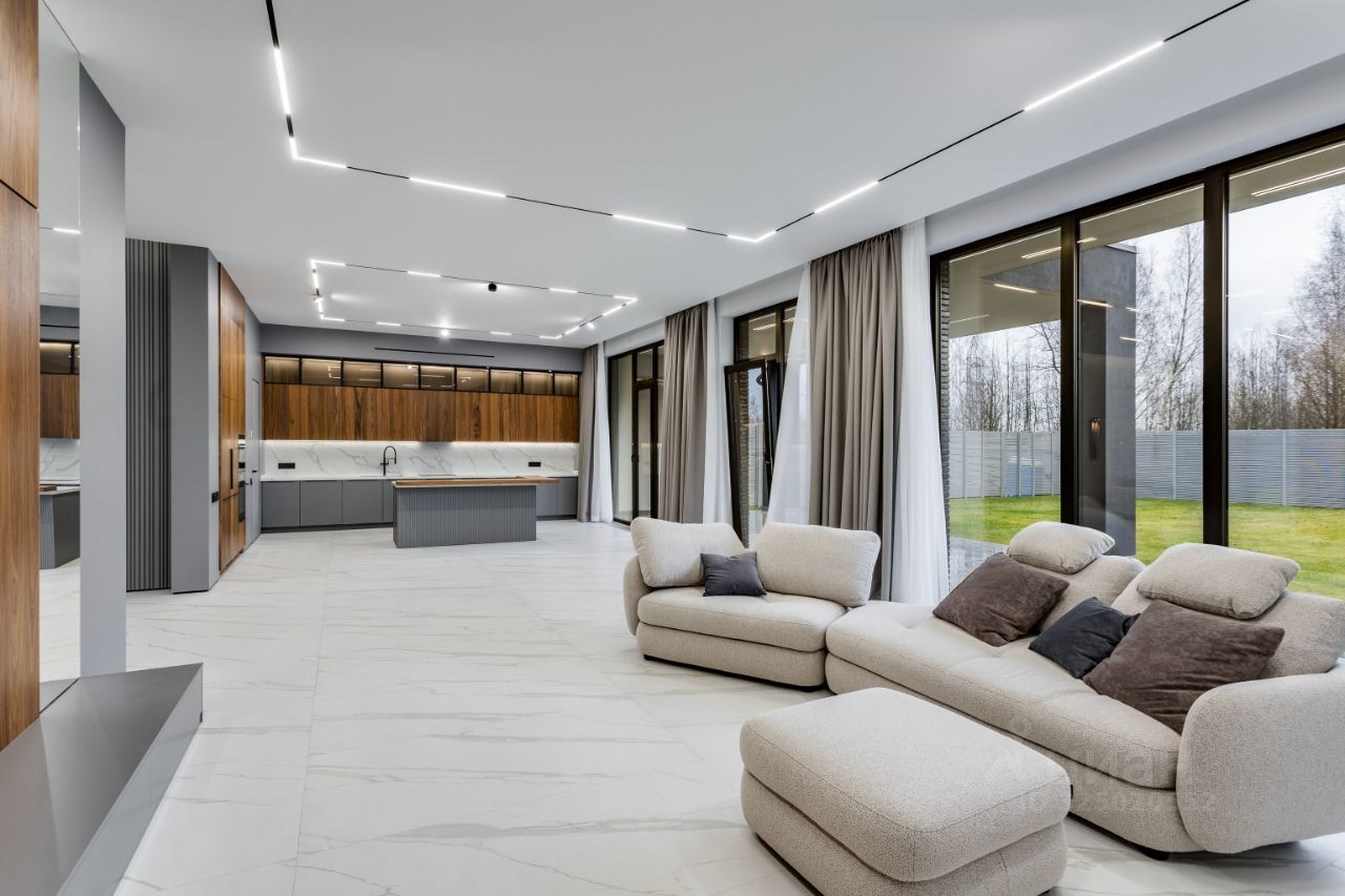 - Общая площадь 605 кв.м. подарит вам максимум пространства для творчества и отдыха. - Панорамное остекление наполнит комнаты естественным светом и откроет потрясающие виды на участок. - Просторная кухня-столовая-гостиная объединяется с уютной террасой, создавая идеальное пространство для семейных ужинов и встреч с друзьями. - Удобства каждого члена семьи обеспечены пятью светлыми спальнями со своими с/у и гардеробными (включая спальню на первом этаже). - Уютная СПА-зона с собственной сауной позволит расслабиться после насыщенного дня. - Гараж на два автомобиля решит проблему парковки и сохранит ваш транспорт в целости и сохранности. - Дом оборудован мебелью премиум-класса и полностью готов к вашему приезду.
