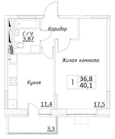Продается полностью готовая 1-комн. квартира общей площадью 40,1 кв.м. (36,8 кв.м. без учета балкона) в новом доме ЖК Шоколад.